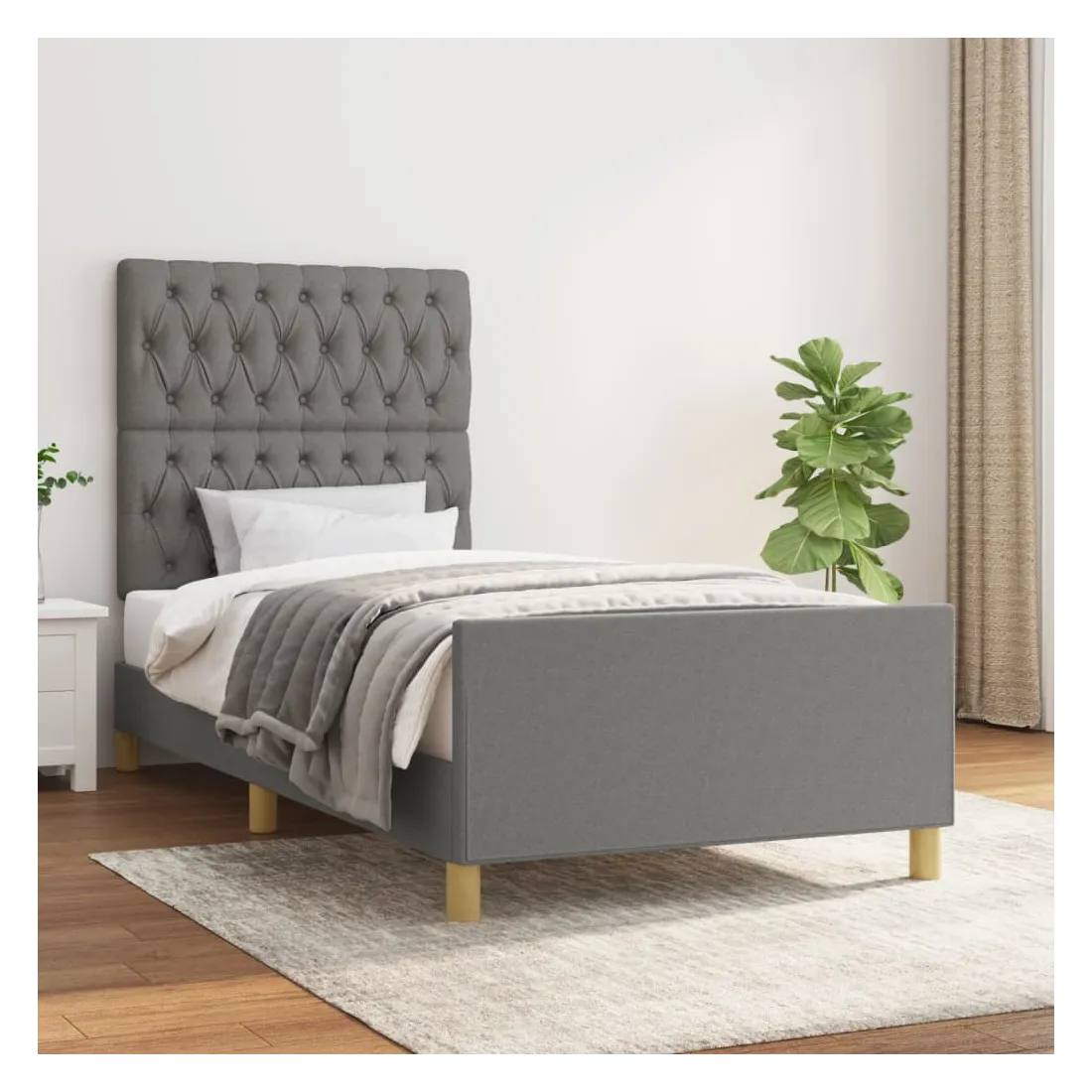 Cadre de lit sans matelas gris foncé 90x200 cm tissu
