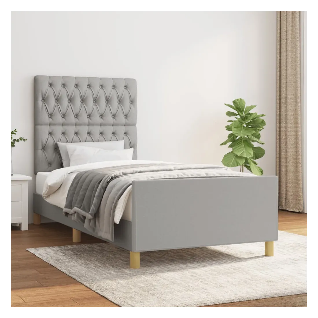 Cadre de lit sans matelas gris clair 100x200 cm tissu