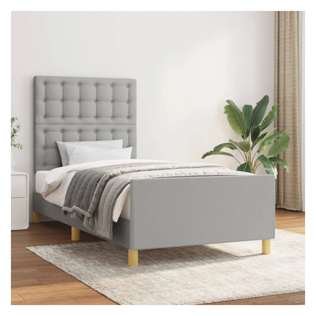 Obtenez une meilleure nuit de sommeil reposante grâce à ce cadre de lit avec tête de lit ! Il est un supplément accueillant à toute chambre à coucher. Tissu durable : le tissu présente un aspect simple et épuré, et il est respirant et durable.Hauteur réglable : la tête de lit est réglable en hauteur selon vos préférences.Pieds de soutien : le lit est soutenu par des pieds robustes, qui assurent sa stabilité, sa sécurité et sa fermeté.Lattes de contreplaqué : les lattes de contreplaqué assurent une bonne répartition du poids, garantissant que le matelas reste en place à chaque torsion de votre corps pendant le sommeil.Excellent soutien : la tête de lit vous offre un excellent soutien du dos lorsque vous êtes assis dans votre lit pour lire ou regarder la télévision. Remarque :La livraison comprend uniquement un cadre de lit. Le matelas n'est pas inclus. Vous pouvez consulter notre boutique pour trouver les matelas assortis.Chaque produit est livré avec un manuel de montage dans la boîte pour un montage facile.