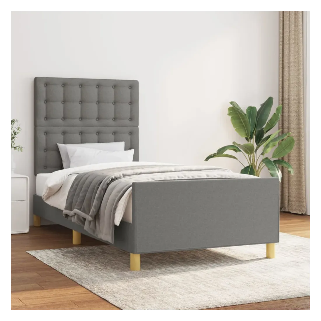 Obtenez une meilleure nuit de sommeil reposante grâce à ce cadre de lit avec tête de lit ! Il est un supplément accueillant à toute chambre à coucher. Tissu durable : le tissu présente un aspect simple et épuré, et il est respirant et durable.Hauteur réglable : la tête de lit est réglable en hauteur selon vos préférences.Pieds de soutien : le lit est soutenu par des pieds robustes, qui assurent sa stabilité, sa sécurité et sa fermeté.Lattes de contreplaqué : les lattes de contreplaqué assurent une bonne répartition du poids, garantissant que le matelas reste en place à chaque torsion de votre corps pendant le sommeil.Excellent soutien : la tête de lit vous offre un excellent soutien du dos lorsque vous êtes assis dans votre lit pour lire ou regarder la télévision. Remarque :La livraison comprend uniquement un cadre de lit. Le matelas n'est pas inclus. Vous pouvez consulter notre boutique pour trouver les matelas assortis.Chaque produit est livré avec un manuel de montage dans la boîte pour un montage facile.