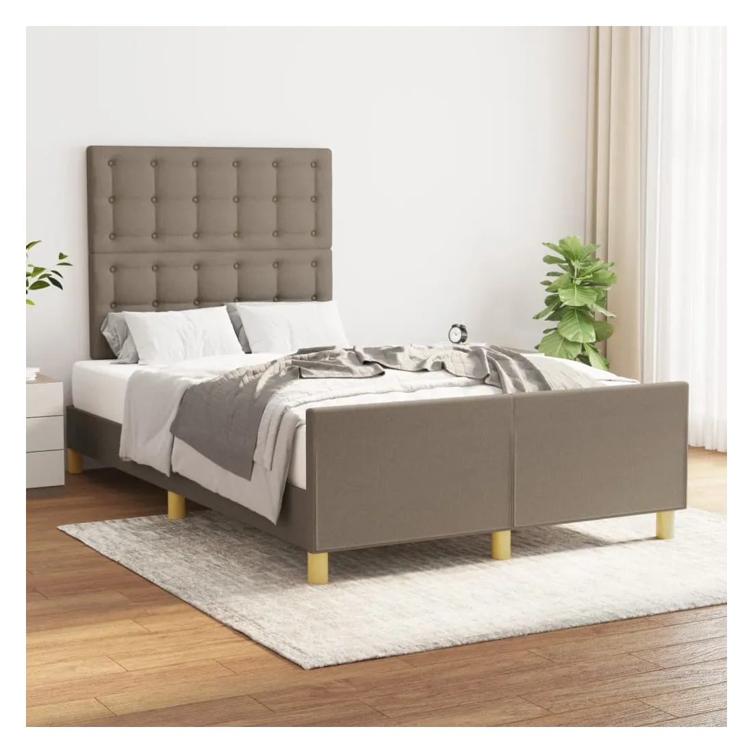Obtenez une meilleure nuit de sommeil reposante grâce à ce cadre de lit avec tête de lit ! Il est un supplément accueillant à toute chambre à coucher. Tissu durable : le tissu présente un aspect simple et épuré, et il est respirant et durable.Hauteur réglable : la tête de lit est réglable en hauteur selon vos préférences.Pieds de soutien : le lit est soutenu par des pieds robustes, qui assurent sa stabilité, sa sécurité et sa fermeté.Lattes de contreplaqué : les lattes de contreplaqué assurent une bonne répartition du poids, garantissant que le matelas reste en place à chaque torsion de votre corps pendant le sommeil.Excellent soutien : la tête de lit vous offre un excellent soutien du dos lorsque vous êtes assis dans votre lit pour lire ou regarder la télévision. Remarque :La livraison comprend uniquement un cadre de lit. Le matelas n'est pas inclus. Vous pouvez consulter notre boutique pour trouver les matelas assortis.Chaque produit est livré avec un manuel de montage dans la boîte pour un montage facile.