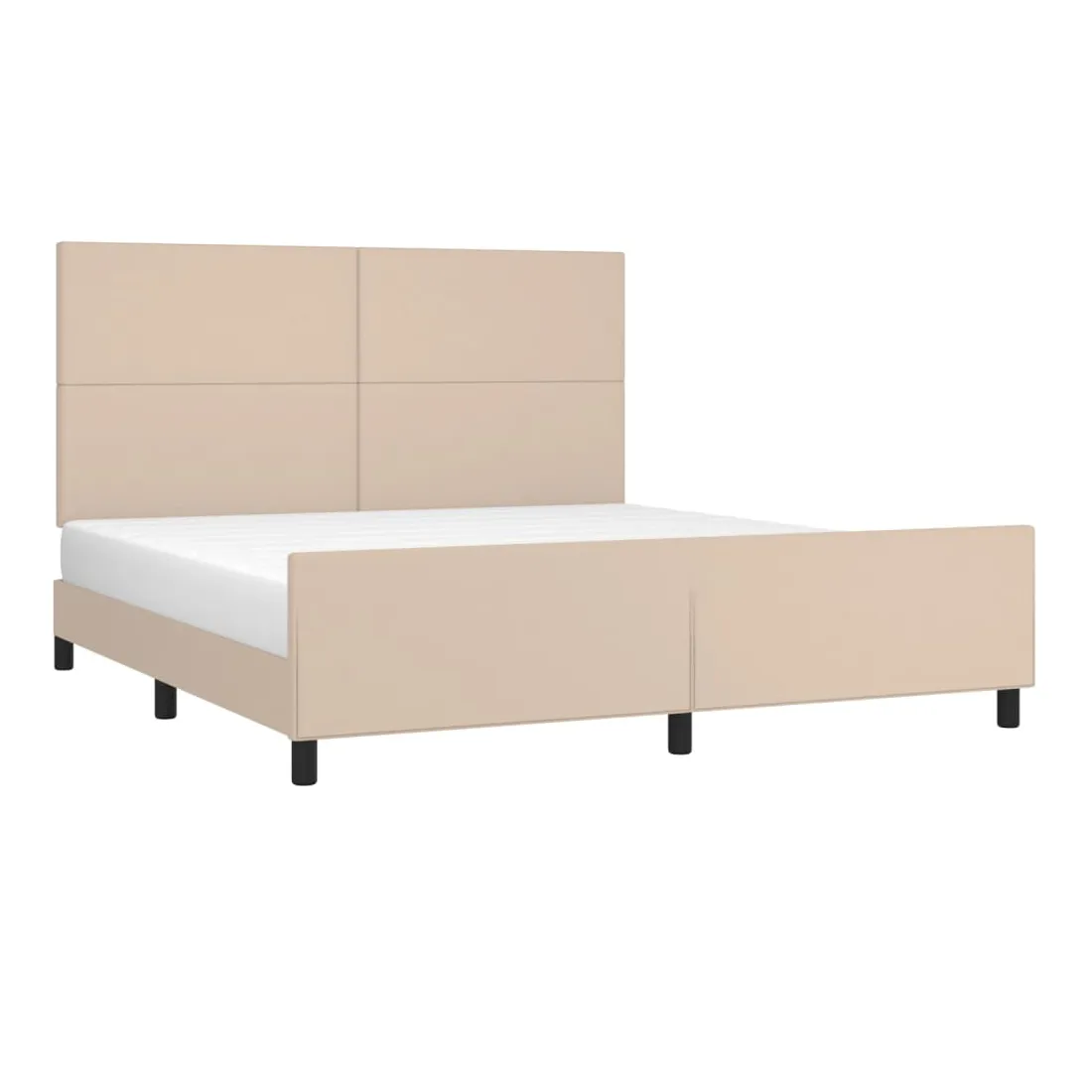 Obtenez une meilleure nuit de sommeil reposante grâce à ce cadre de lit avec tête de lit ! Il est un supplément accueillant à toute chambre à coucher. Similicuir durable : le similicuir de qualité supérieure est un matériau très durable. Il est résistant aux taches, ce qui le rend facile à nettoyer avec un chiffon humide. La surface lisse donne également un aspect luxueux et la beauté du cuir véritable.Hauteur réglable : la tête de lit est réglable en hauteur selon vos préférences.Pieds de soutien : le lit est soutenu par des pieds robustes, qui assurent sa stabilité, sa sécurité et sa fermeté.Lattes de contreplaqué : les lattes de contreplaqué assurent une bonne répartition du poids, garantissant que le matelas reste en place à chaque torsion de votre corps pendant le sommeil.Excellent soutien : la tête de lit vous offre un excellent soutien du dos lorsque vous êtes assis dans votre lit pour lire ou regarder la télévision. Remarque :La livraison comprend uniquement un cadre de lit. Le matelas n'est pas inclus. Vous pouvez consulter notre boutique pour trouver les matelas assortis.Chaque produit est livré avec un manuel de montage dans la boîte pour un montage facile.