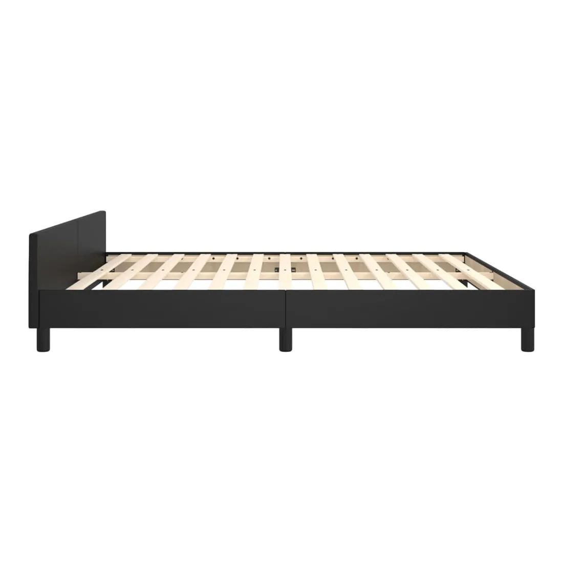 Obtenez une meilleure nuit de sommeil reposante grâce à ce cadre de lit avec tête de lit ! Il est un supplément accueillant à toute chambre à coucher. Similicuir durable : le similicuir de qualité supérieure est un matériau très durable. Il est résistant aux taches, ce qui le rend facile à nettoyer avec un chiffon humide. La surface lisse donne également un aspect luxueux et la beauté du cuir véritable.Hauteur réglable : la tête de lit est réglable en hauteur selon vos préférences.Pieds de soutien : le lit est soutenu par des pieds robustes, qui assurent sa stabilité, sa sécurité et sa fermeté.Lattes de contreplaqué : les lattes de contreplaqué assurent une bonne répartition du poids, garantissant que le matelas reste en place à chaque torsion de votre corps pendant le sommeil.Excellent soutien : la tête de lit vous offre un excellent soutien du dos lorsque vous êtes assis dans votre lit pour lire ou regarder la télévision. Remarque :La livraison comprend uniquement un cadre de lit. Le matelas n'est pas inclus. Vous pouvez consulter notre boutique pour trouver les matelas assortis.Chaque produit est livré avec un manuel de montage dans la boîte pour un montage facile.