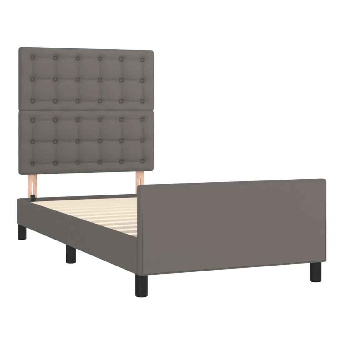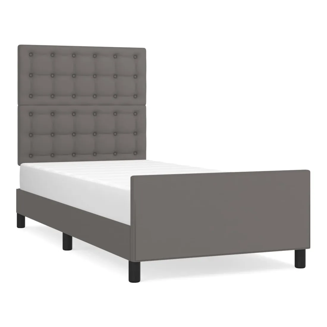 Obtenez une meilleure nuit de sommeil reposante grâce à ce cadre de lit avec tête de lit ! Il est un supplément accueillant à toute chambre à coucher. Similicuir durable : le similicuir de qualité supérieure est un matériau très durable. Il est résistant aux taches, ce qui le rend facile à nettoyer avec un chiffon humide. La surface lisse donne également un aspect luxueux et la beauté du cuir véritable.Hauteur réglable : la tête de lit est réglable en hauteur selon vos préférences.Pieds de soutien : le lit est soutenu par des pieds robustes, qui assurent sa stabilité, sa sécurité et sa fermeté.Lattes de contreplaqué : les lattes de contreplaqué assurent une bonne répartition du poids, garantissant que le matelas reste en place à chaque torsion de votre corps pendant le sommeil.Excellent soutien : la tête de lit vous offre un excellent soutien du dos lorsque vous êtes assis dans votre lit pour lire ou regarder la télévision. Remarque :La livraison comprend uniquement un cadre de lit. Le matelas n'est pas inclus. Vous pouvez consulter notre boutique pour trouver les matelas assortis.Chaque produit est livré avec un manuel de montage dans la boîte pour un montage facile.