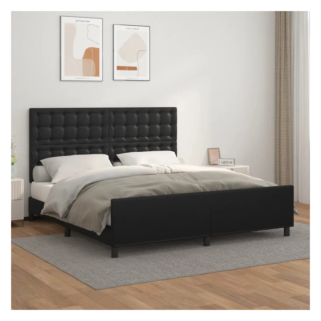 Obtenez une meilleure nuit de sommeil reposante grâce à ce cadre de lit avec tête de lit ! Il est un supplément accueillant à toute chambre à coucher. Similicuir durable : le similicuir de qualité supérieure est un matériau très durable. Il est résistant aux taches, ce qui le rend facile à nettoyer avec un chiffon humide. La surface lisse donne également un aspect luxueux et la beauté du cuir véritable.Hauteur réglable : la tête de lit est réglable en hauteur selon vos préférences.Pieds de soutien : le lit est soutenu par des pieds robustes, qui assurent sa stabilité, sa sécurité et sa fermeté.Lattes de contreplaqué : les lattes de contreplaqué assurent une bonne répartition du poids, garantissant que le matelas reste en place à chaque torsion de votre corps pendant le sommeil.Excellent soutien : la tête de lit vous offre un excellent soutien du dos lorsque vous êtes assis dans votre lit pour lire ou regarder la télévision. Remarque :La livraison comprend uniquement un cadre de lit. Le matelas n'est pas inclus. Vous pouvez consulter notre boutique pour trouver les matelas assortis.Chaque produit est livré avec un manuel de montage dans la boîte pour un montage facile.