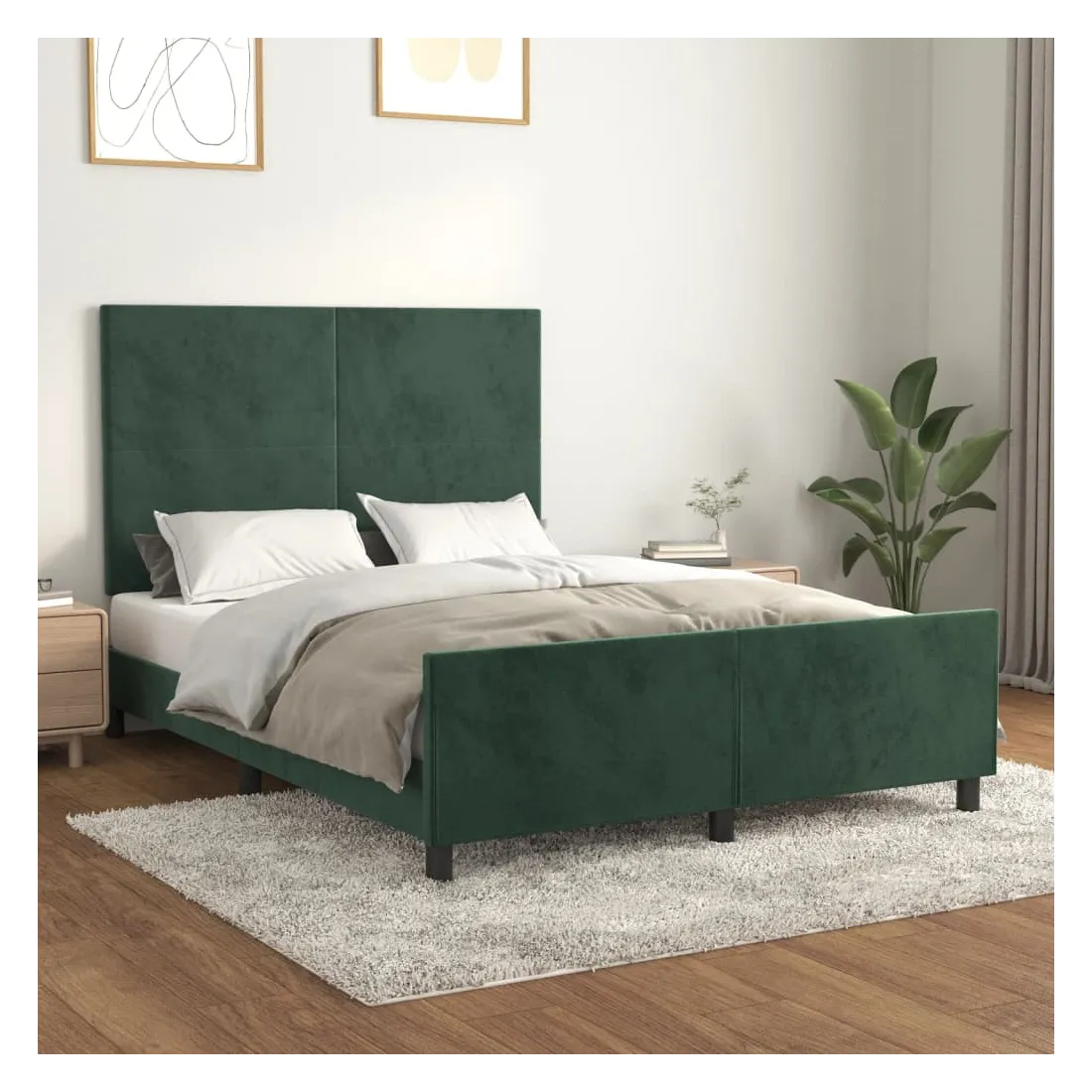 Cadre de lit sans matelas vert foncé 140x190 cm velours