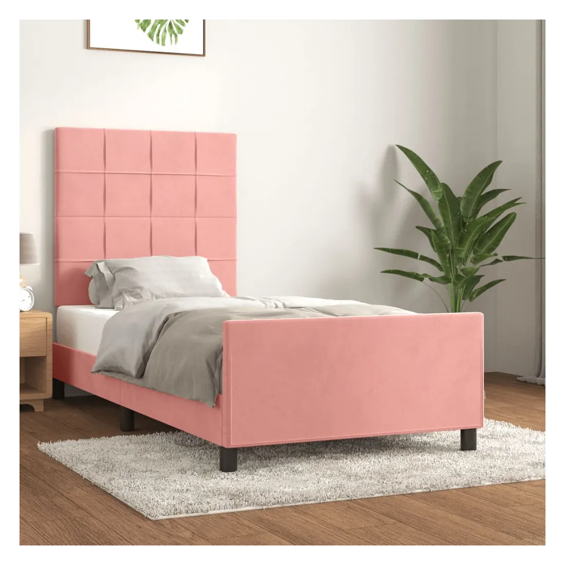 Obtenez une meilleure nuit de sommeil reposante grâce à ce cadre de lit avec tête de lit ! Il est un supplément accueillant à toute chambre à coucher. Velours doux : le velours est un tissu doux et luxueux qui se reconnaît à son tas dense de fibres uniformément coupées qui ont une touche lisse. Le tissu en velours présente un toucher doux distinctif, ce qui le rend confortable au toucher.Hauteur réglable : la tête de lit est réglable en hauteur selon vos préférences.Pieds de soutien : le lit est soutenu par des pieds robustes, qui assurent sa stabilité, sa sécurité et sa fermeté.Lattes de contreplaqué : les lattes de contreplaqué assurent une bonne répartition du poids, garantissant que le matelas reste en place à chaque torsion de votre corps pendant le sommeil.Excellent soutien : la tête de lit vous offre un excellent soutien du dos lorsque vous êtes assis dans votre lit pour lire ou regarder la télévision. Remarque :La livraison comprend uniquement un cadre de lit. Le matelas n'est pas inclus. Vous pouvez consulter notre boutique pour trouver les matelas assortis.Chaque produit est livré avec un manuel de montage dans la boîte pour un montage facile.