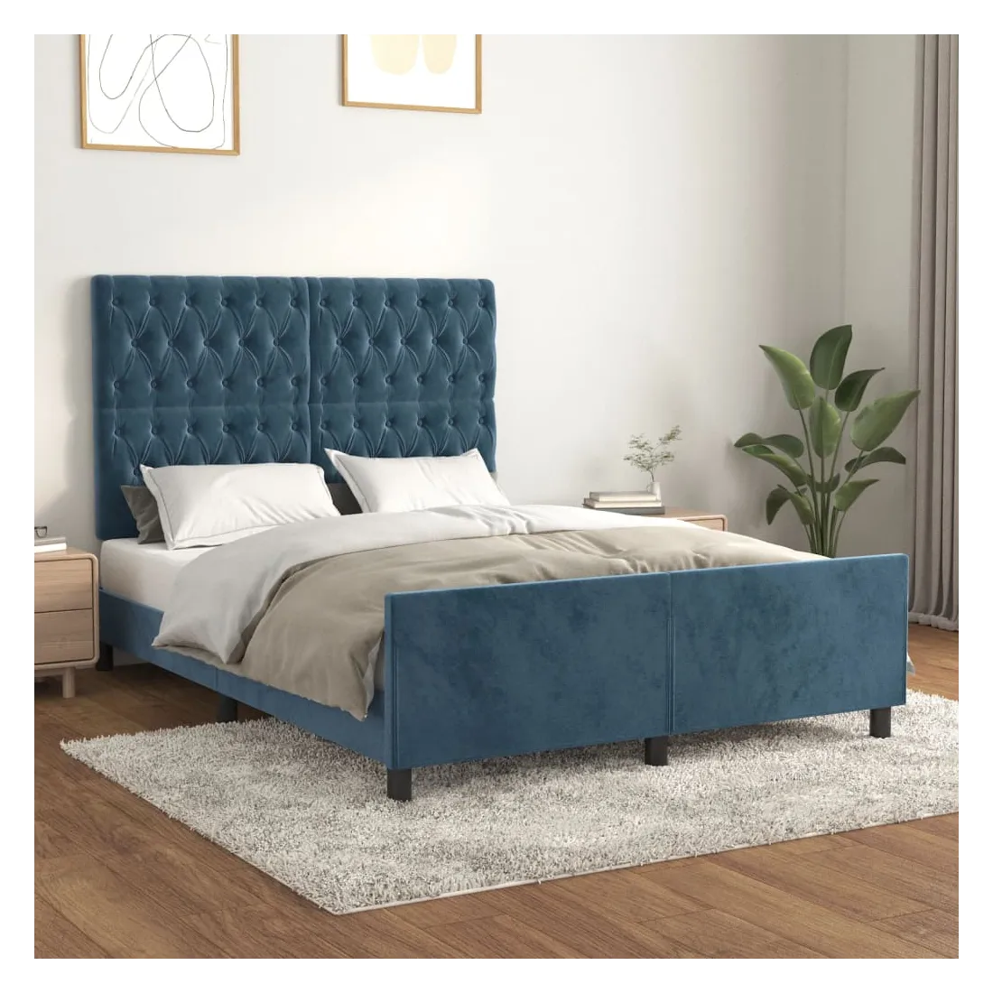 Obtenez une meilleure nuit de sommeil reposante grâce à ce cadre de lit avec tête de lit ! Il est un supplément accueillant à toute chambre à coucher. Velours doux : le velours est un tissu doux et luxueux qui se reconnaît à son tas dense de fibres uniformément coupées qui ont une touche lisse. Le tissu en velours présente un toucher doux distinctif, ce qui le rend confortable au toucher.Hauteur réglable : la tête de lit est réglable en hauteur selon vos préférences.Pieds de soutien : le lit est soutenu par des pieds robustes, qui assurent sa stabilité, sa sécurité et sa fermeté.Lattes de contreplaqué : les lattes de contreplaqué assurent une bonne répartition du poids, garantissant que le matelas reste en place à chaque torsion de votre corps pendant le sommeil.Excellent soutien : la tête de lit vous offre un excellent soutien du dos lorsque vous êtes assis dans votre lit pour lire ou regarder la télévision. Remarque :La livraison comprend uniquement un cadre de lit. Le matelas n'est pas inclus. Vous pouvez consulter notre boutique pour trouver les matelas assortis.Chaque produit est livré avec un manuel de montage dans la boîte pour un montage facile.