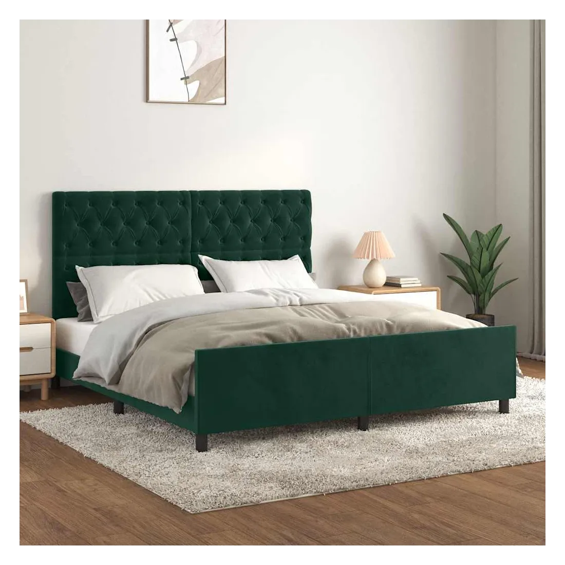 Obtenez une meilleure nuit de sommeil reposante grâce à ce cadre de lit avec tête de lit ! Il est un supplément accueillant à toute chambre à coucher. Velours doux : le velours est un tissu doux et luxueux qui se reconnaît à son tas dense de fibres uniformément coupées qui ont une touche lisse. Le tissu en velours présente un toucher doux distinctif, ce qui le rend confortable au toucher.Hauteur réglable : la tête de lit est réglable en hauteur selon vos préférences.Pieds de soutien : le lit est soutenu par des pieds robustes, qui assurent sa stabilité, sa sécurité et sa fermeté.Lattes de contreplaqué : les lattes de contreplaqué assurent une bonne répartition du poids, garantissant que le matelas reste en place à chaque torsion de votre corps pendant le sommeil.Excellent soutien : la tête de lit vous offre un excellent soutien du dos lorsque vous êtes assis dans votre lit pour lire ou regarder la télévision. Remarque :La livraison comprend uniquement un cadre de lit. Le matelas n'est pas inclus. Vous pouvez consulter notre boutique pour trouver les matelas assortis.Chaque produit est livré avec un manuel de montage dans la boîte pour un montage facile.