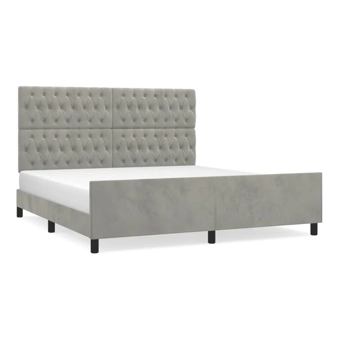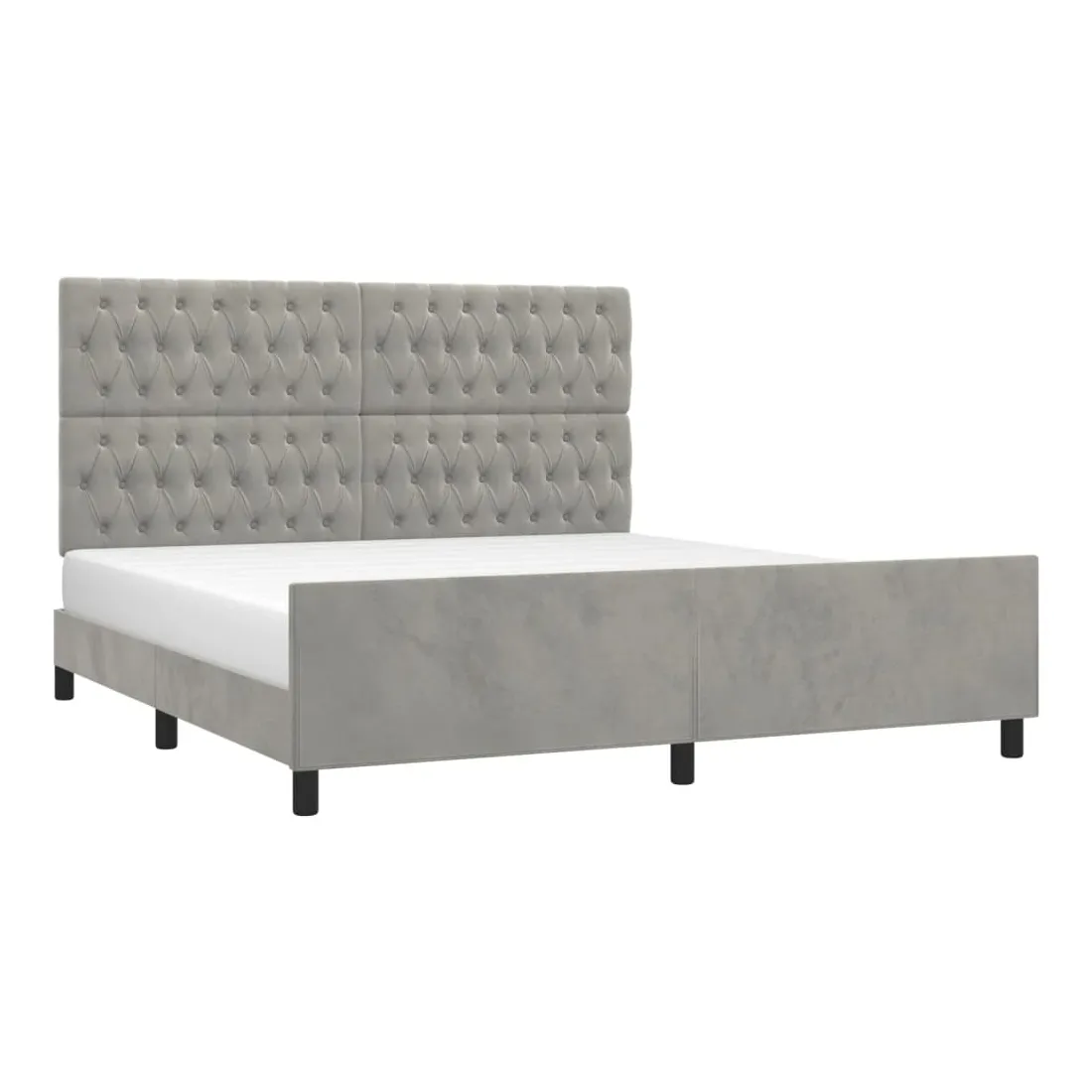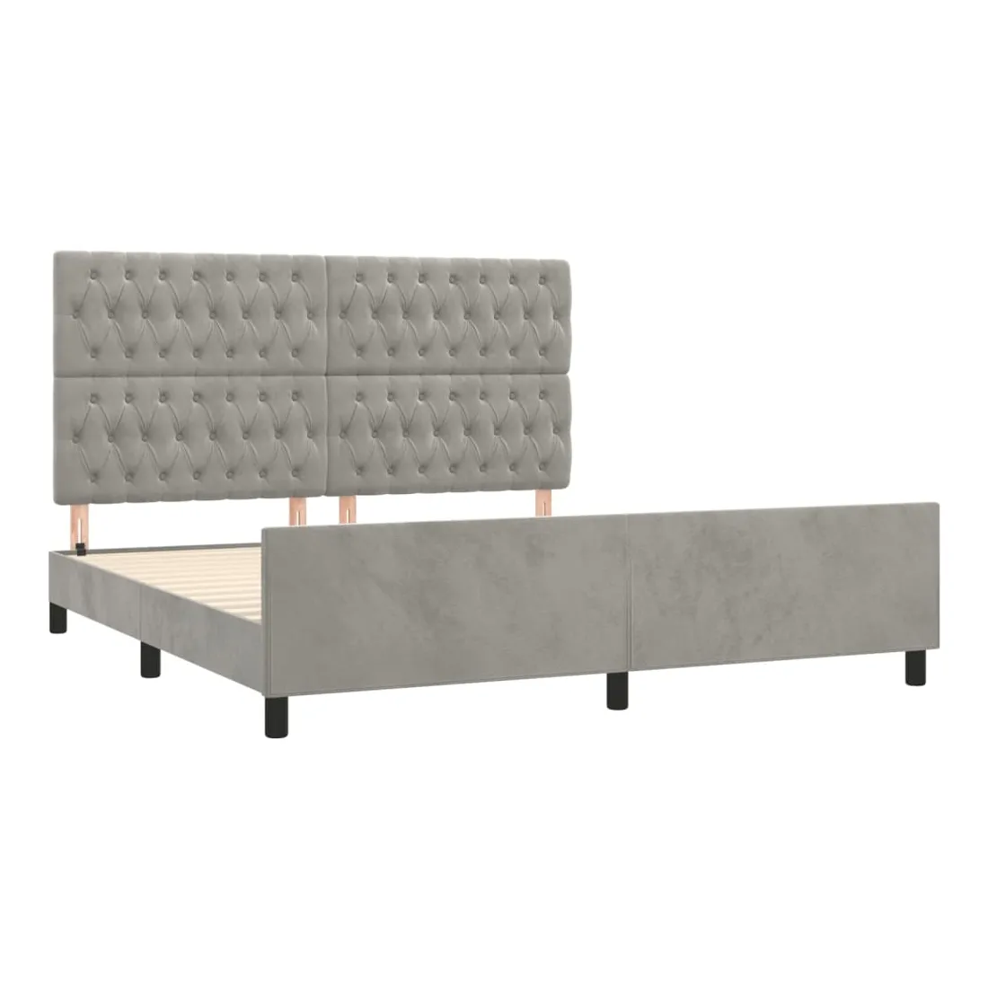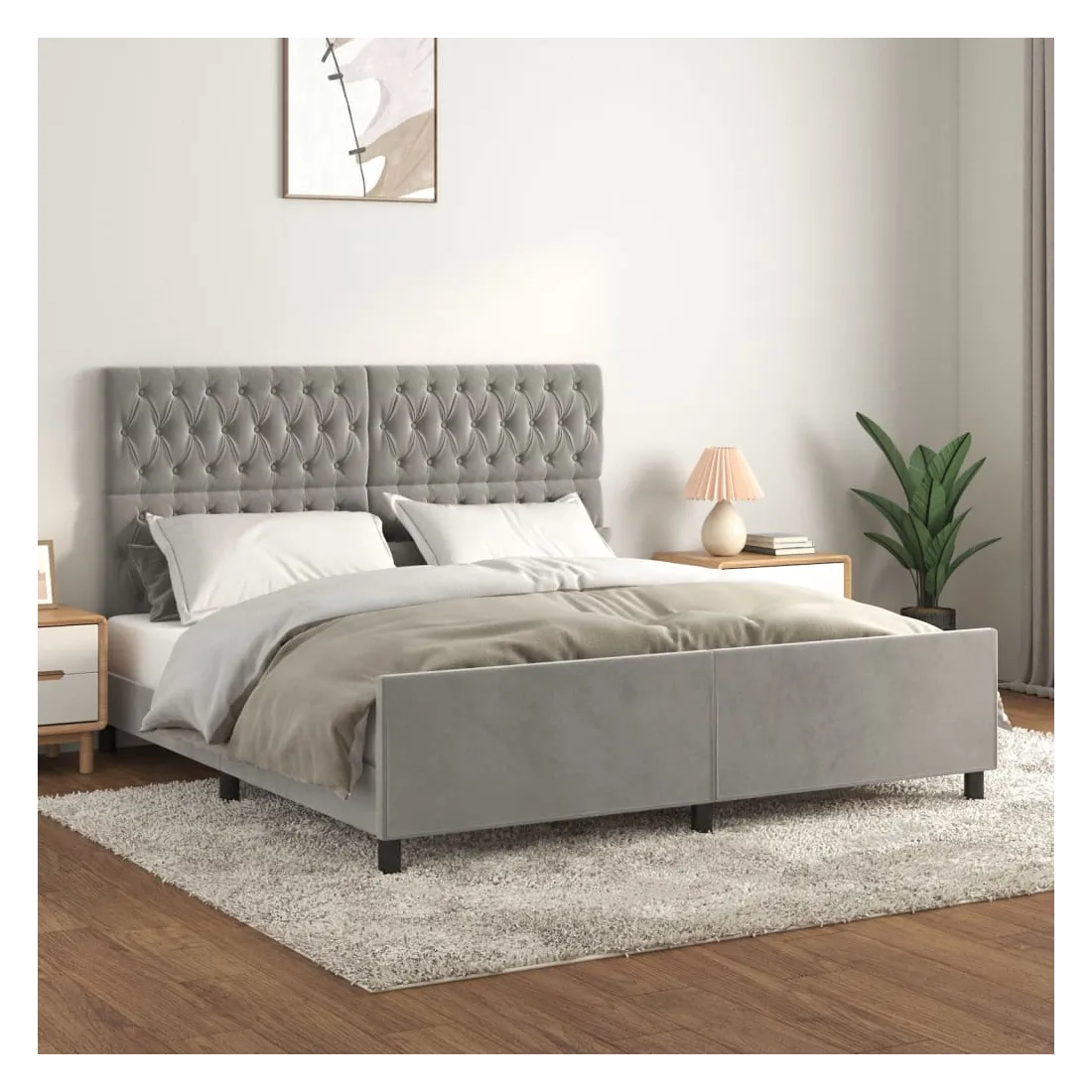 Obtenez une meilleure nuit de sommeil reposante grâce à ce cadre de lit avec tête de lit ! Il est un supplément accueillant à toute chambre à coucher. Velours doux : le velours est un tissu doux et luxueux qui se reconnaît à son tas dense de fibres uniformément coupées qui ont une touche lisse. Le tissu en velours présente un toucher doux distinctif, ce qui le rend confortable au toucher.Hauteur réglable : la tête de lit est réglable en hauteur selon vos préférences.Pieds de soutien : le lit est soutenu par des pieds robustes, qui assurent sa stabilité, sa sécurité et sa fermeté.Lattes de contreplaqué : les lattes de contreplaqué assurent une bonne répartition du poids, garantissant que le matelas reste en place à chaque torsion de votre corps pendant le sommeil.Excellent soutien : la tête de lit vous offre un excellent soutien du dos lorsque vous êtes assis dans votre lit pour lire ou regarder la télévision. Remarque :La livraison comprend uniquement un cadre de lit. Le matelas n'est pas inclus. Vous pouvez consulter notre boutique pour trouver les matelas assortis.Chaque produit est livré avec un manuel de montage dans la boîte pour un montage facile.