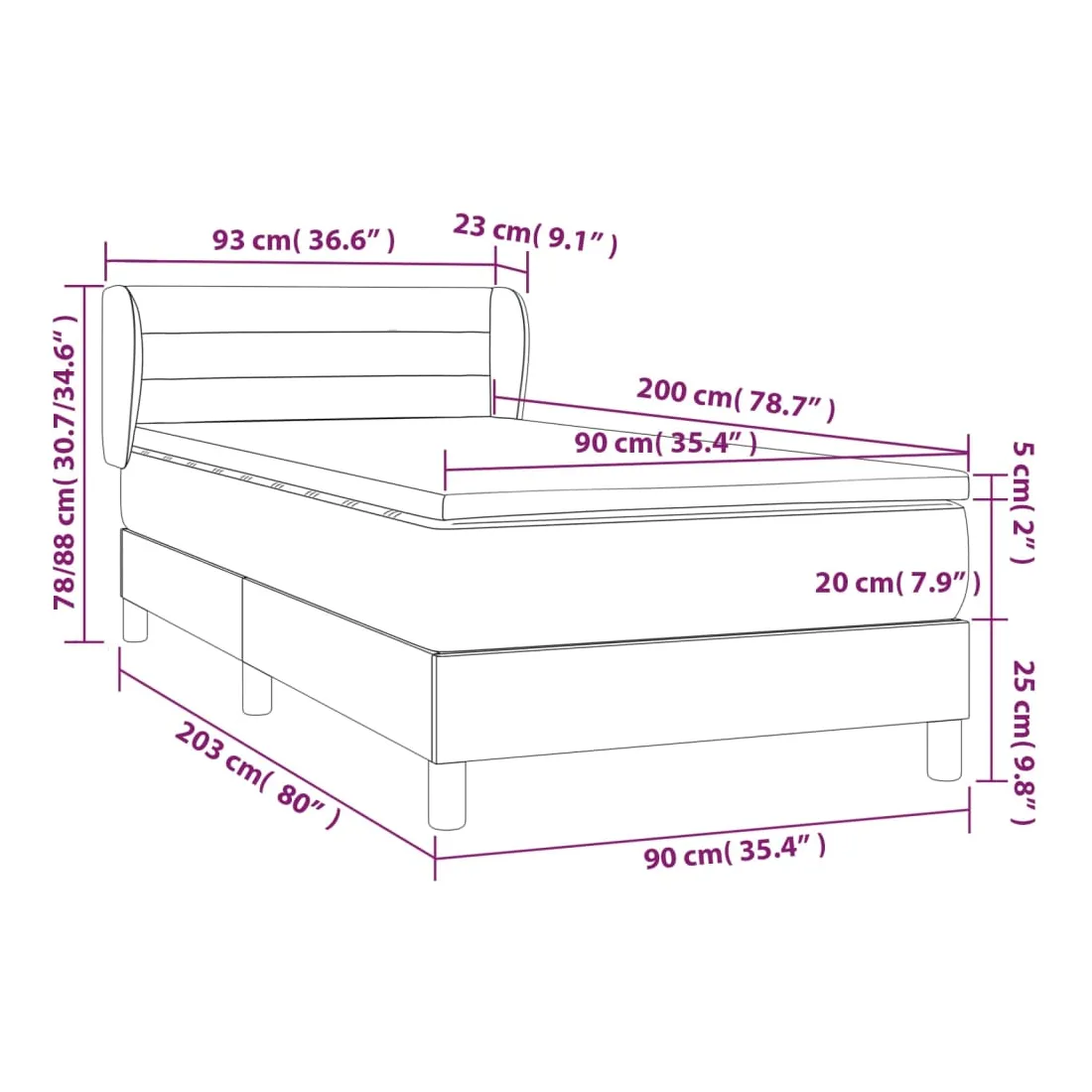 • Dimensions : 90 x 200 x 20 cm (l x L x H)