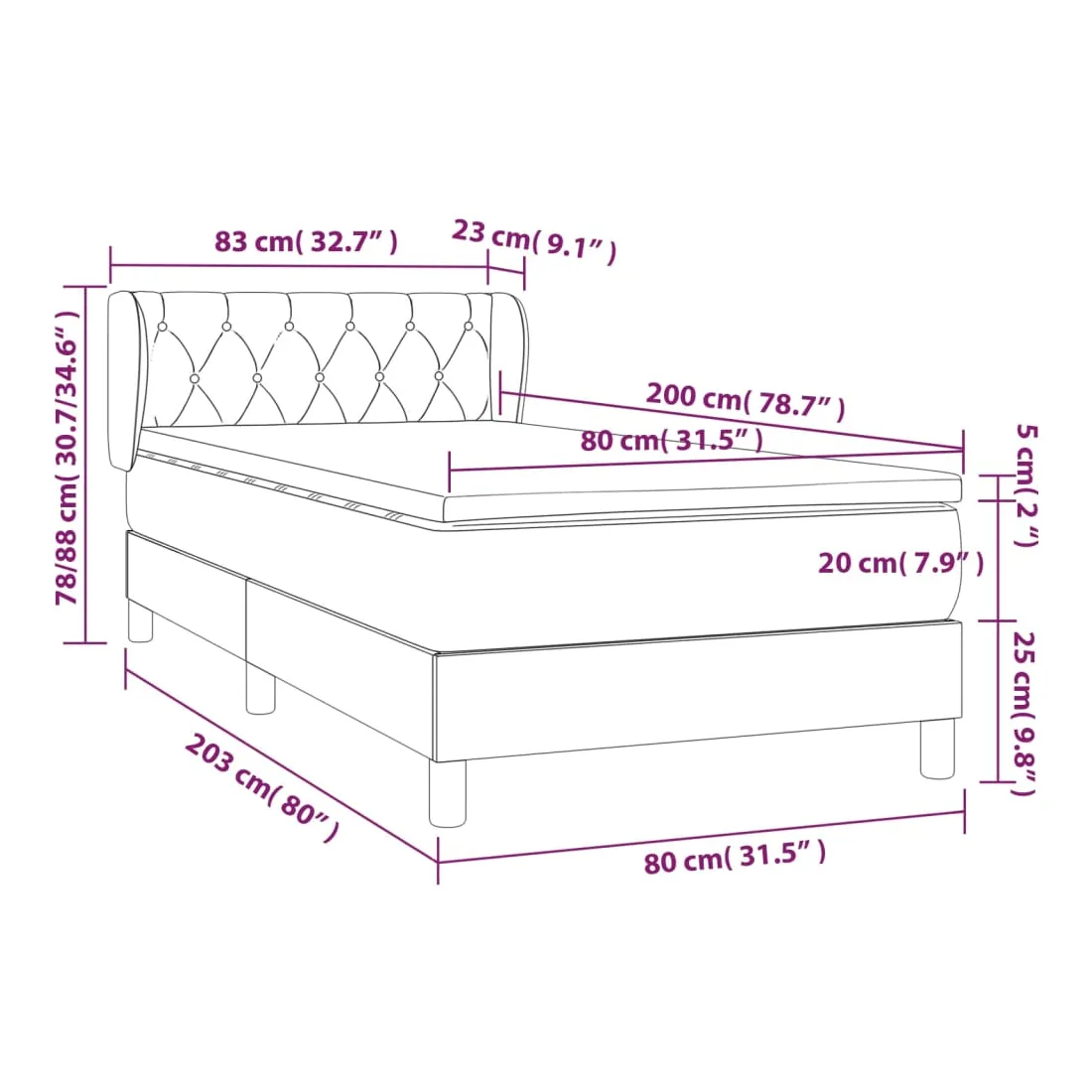 - 80 x 200 cm