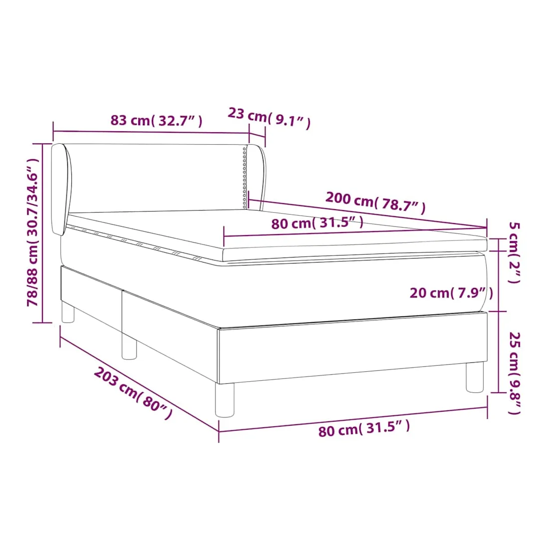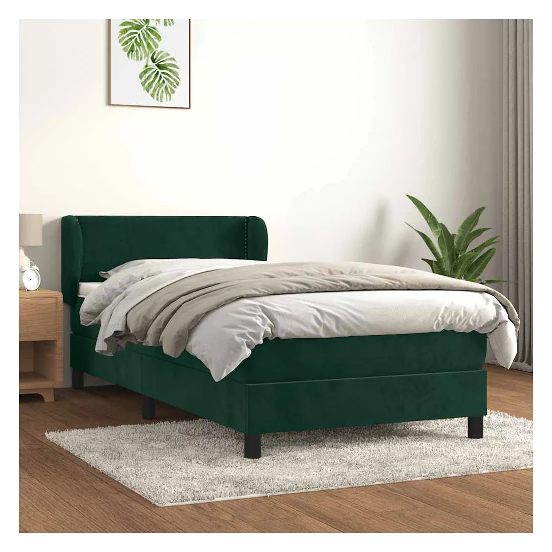 Utilisez ce lit à sommier pour profiter d'une nuit de sommeil réparatrice ! Il vous offre une relaxation maximale et un sommeil agréable. Velours doux : le velours est un tissu doux et luxueux qui se reconnaît à son tas dense de fibres uniformément coupées qui ont une touche lisse. Le tissu en velours présente un toucher doux distinctif, ce qui le rend confortable au toucher.Tête de lit pratique : la tête de lit est réglable en hauteur selon vos préférences. La tête de lit vous offre un excellent soutien du dos lorsque vous êtes assis dans votre lit pour lire ou regarder la télévision.Matelas à ressorts ensachés : le ressort ensaché individuel intégré est connu pour sa très haute qualité tout en assurant un haut niveau de durabilité et d'adaptabilité. Il peut absorber efficacement le bruit et les chocs causés par les sauts et les rotations.Support moyen-dur : ce matelas de lit offre une stabilité accrue et juste le niveau de fermeté sans sacrifier le confort. Il est donc idéal pour les personnes qui dorment sur le dos ou sur le ventre.Protège-matelas doux pour la peau : le protège-matelas est recouvert d'un tissu résistant et doux pour la peau, ce qui le rend souple et confortable. Remarque :Pour des raisons d'hygiène, le matelas ne peut pas être retourné si l'emballage est retiré ou ouvert.Chaque produit est livré avec un manuel de montage dans la boîte pour un montage facile.