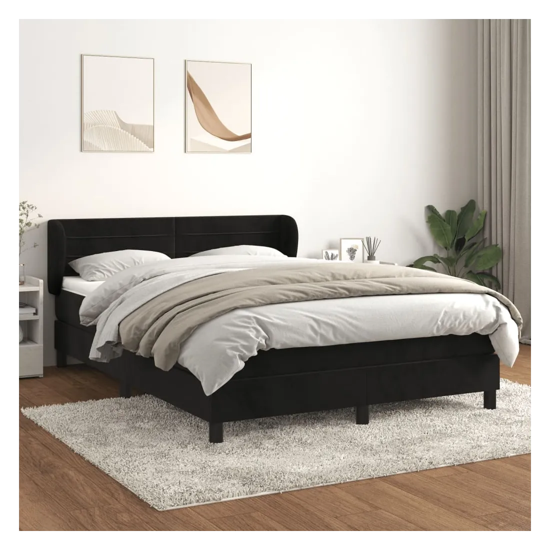 Sommier à lattes de lit avec matelas Noir 140x200 cm Velours
