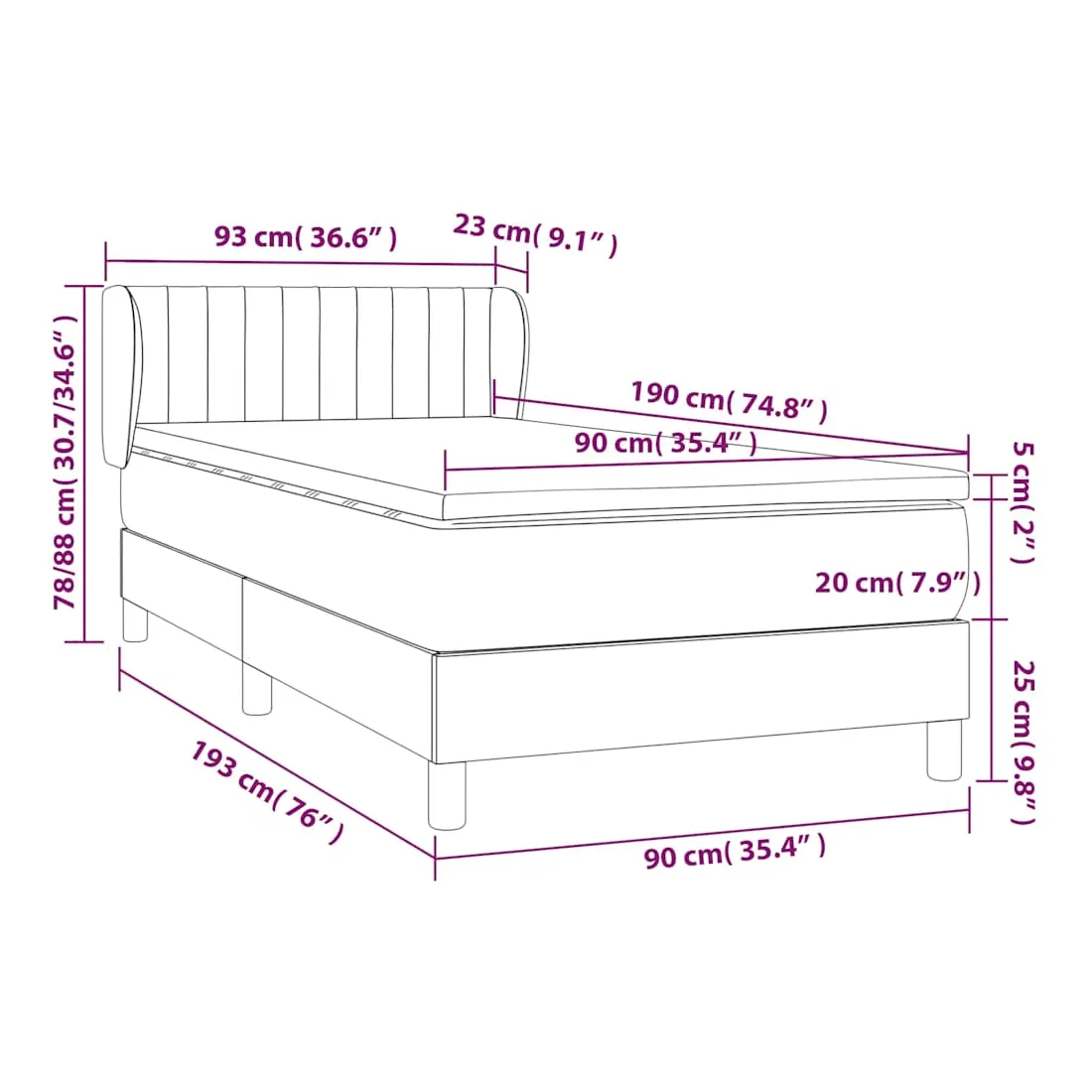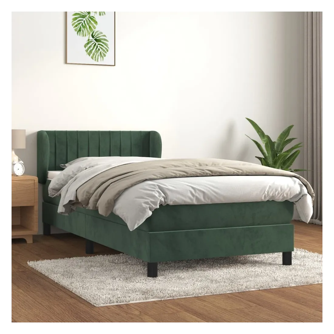 Utilisez ce lit à sommier pour profiter d'une nuit de sommeil réparatrice ! Il vous offre une relaxation maximale et un sommeil agréable. Velours doux : le velours est un tissu doux et luxueux qui se reconnaît à son tas dense de fibres uniformément coupées qui ont une touche lisse. Le tissu en velours présente un toucher doux distinctif, ce qui le rend confortable au toucher.Tête de lit pratique : la tête de lit est réglable en hauteur selon vos préférences. La tête de lit vous offre un excellent soutien du dos lorsque vous êtes assis dans votre lit pour lire ou regarder la télévision.Matelas à ressorts ensachés : le ressort ensaché individuel intégré est connu pour sa très haute qualité tout en assurant un haut niveau de durabilité et d'adaptabilité. Il peut absorber efficacement le bruit et les chocs causés par les sauts et les rotations.Support moyen-dur : ce matelas de lit offre une stabilité accrue et juste le niveau de fermeté sans sacrifier le confort. Il est donc idéal pour les personnes qui dorment sur le dos ou sur le ventre.Protège-matelas doux pour la peau : le protège-matelas est recouvert d'un tissu résistant et doux pour la peau, ce qui le rend souple et confortable. Remarque :Pour des raisons d'hygiène, le matelas ne peut pas être retourné si l'emballage est retiré ou ouvert.Chaque produit est livré avec un manuel de montage dans la boîte pour un montage facile.
