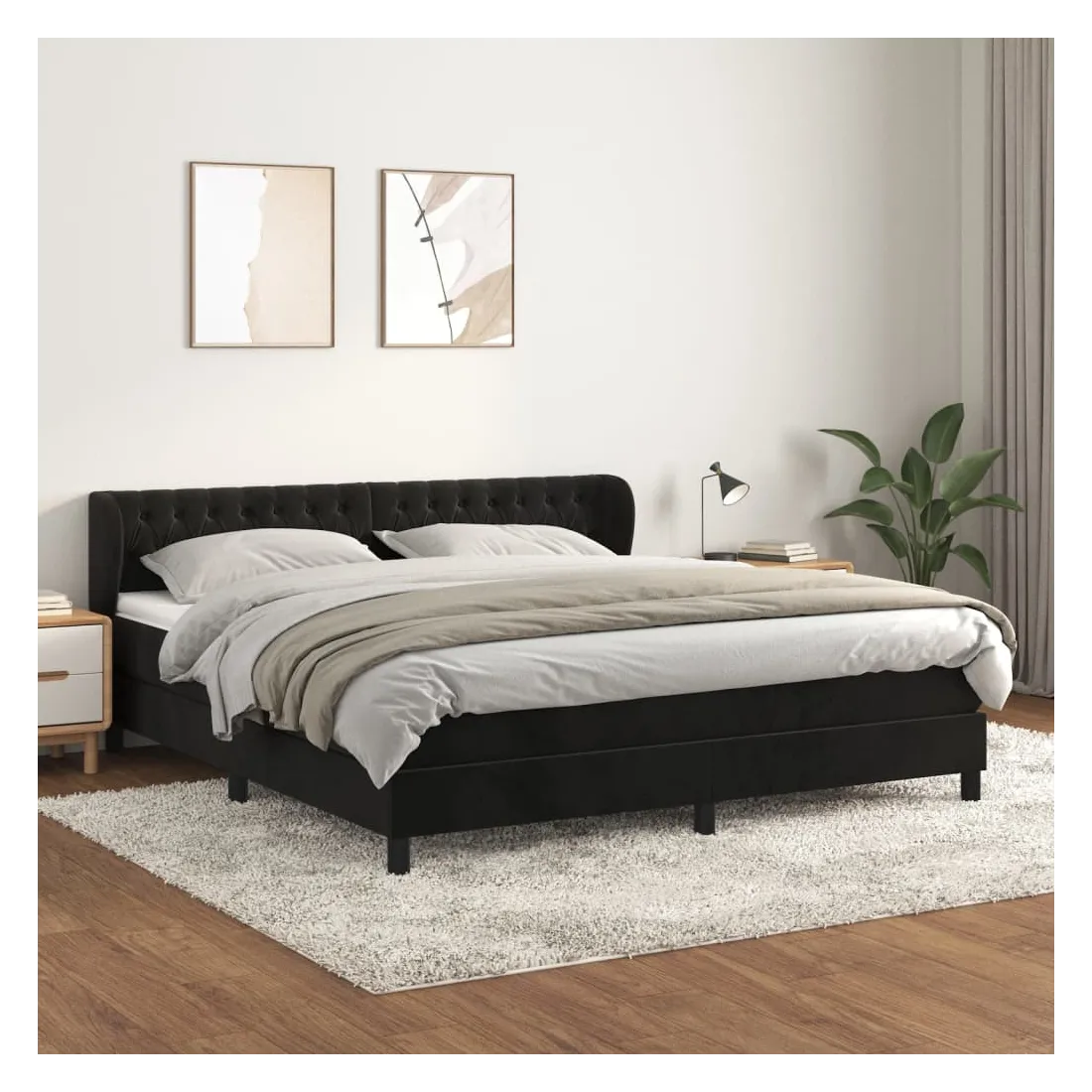 Sommier à lattes de lit et matelas Noir 160x200 cm Velours