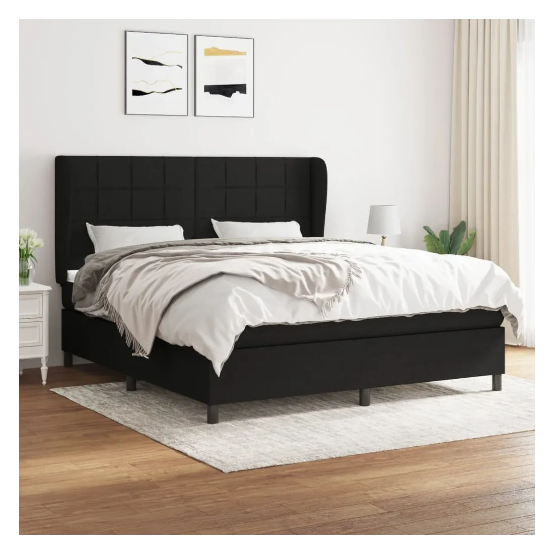 Sommier à lattes de lit avec matelas Noir 180x200 cm Tissu
