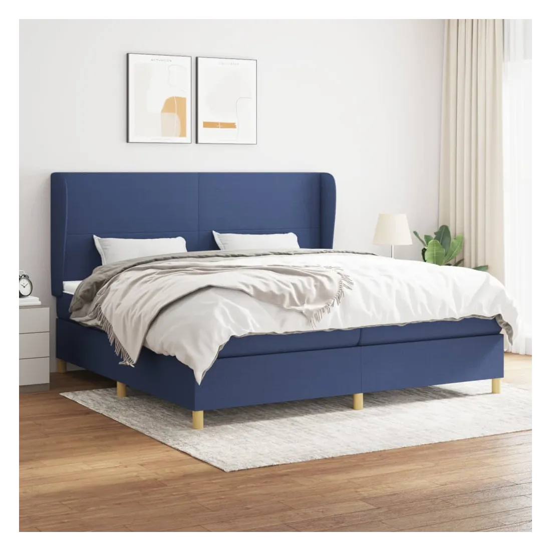 Sommier à lattes de lit avec matelas Bleu 200x200 cm Tissu
