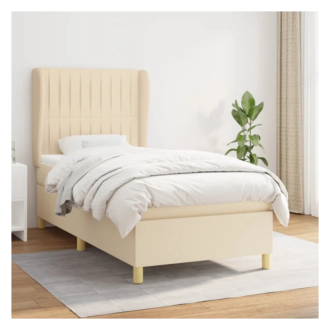 Sommier à lattes de lit avec matelas Crème 90x200 cm Tissu