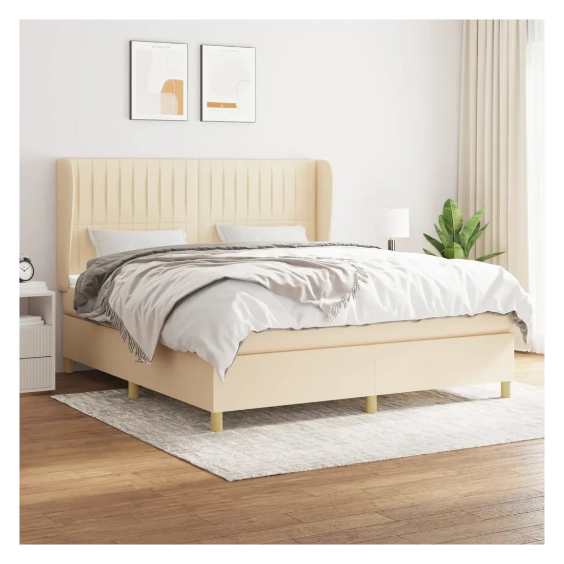 Sommier à lattes de lit avec matelas Crème 180x200 cm Tissu