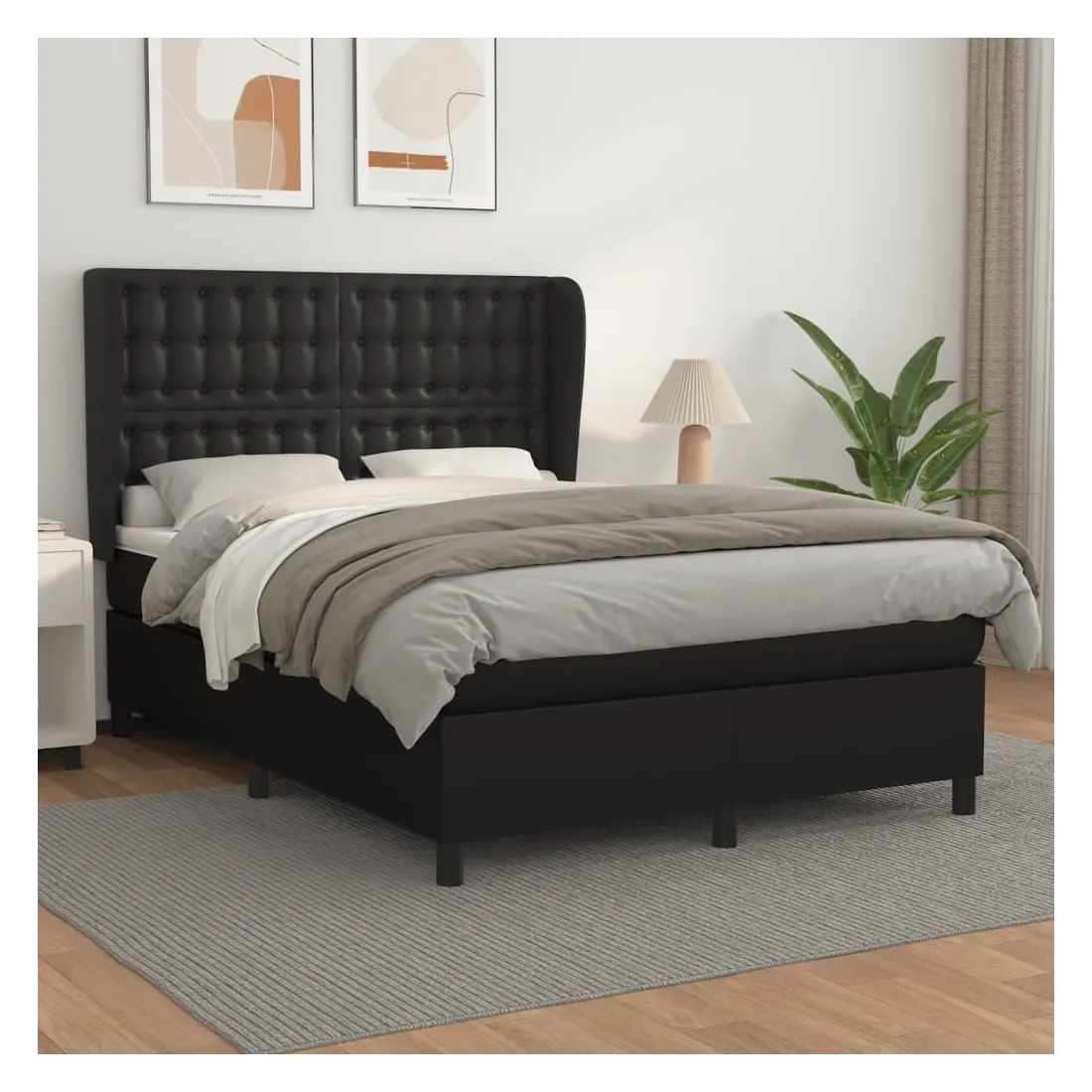 Sommier à lattes de lit avec matelas Noir 140x200 cm Similicuir