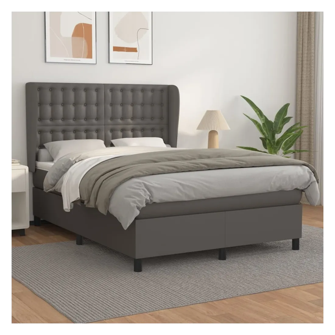 Sommier à lattes de lit avec matelas Gris 140x200 cm Similicuir