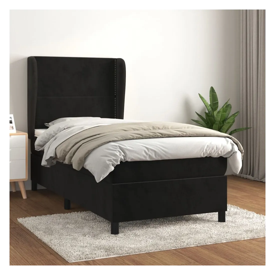 Sommier à lattes de lit avec matelas Noir 100x200 cm Velours