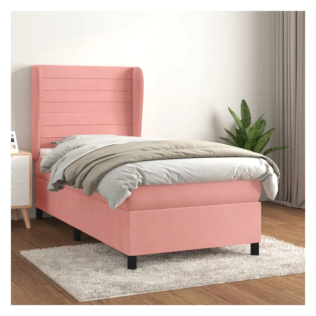 Utilisez ce lit à sommier pour profiter d'une nuit de sommeil réparatrice ! Il vous offre une relaxation maximale et un sommeil agréable. Velours doux : le velours est un tissu doux et luxueux qui se reconnaît à son tas dense de fibres uniformément coupées qui ont une touche lisse. Le tissu en velours présente un toucher doux distinctif, ce qui le rend confortable au toucher.Tête de lit pratique : la tête de lit est réglable en hauteur selon vos préférences. La tête de lit vous offre un excellent soutien du dos lorsque vous êtes assis dans votre lit pour lire ou regarder la télévision.Matelas à ressorts ensachés : le ressort ensaché individuel intégré est connu pour sa très haute qualité tout en assurant un haut niveau de durabilité et d'adaptabilité. Il peut absorber efficacement le bruit et les chocs causés par les sauts et les rotations.Support moyen-dur : ce matelas de lit offre une stabilité accrue et juste le niveau de fermeté sans sacrifier le confort. Il est donc idéal pour les personnes qui dorment sur le dos ou sur le ventre.Protège-matelas doux pour la peau : le protège-matelas est recouvert d'un tissu résistant et doux pour la peau, ce qui le rend souple et confortable. Remarque :Pour des raisons d'hygiène, le matelas ne peut pas être retourné si l'emballage est retiré ou ouvert.Chaque produit est livré avec un manuel de montage dans la boîte pour un montage facile.