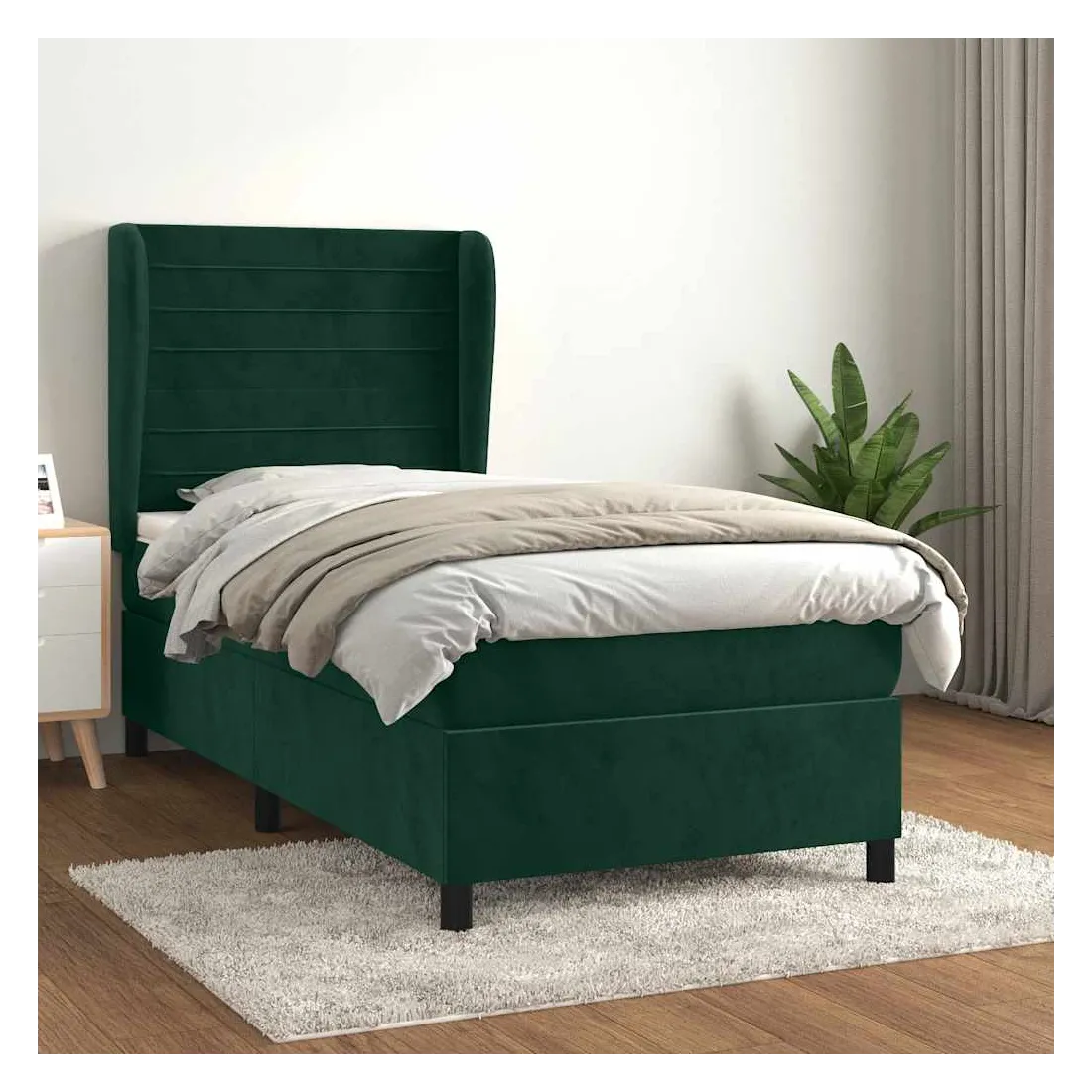 Sommier à lattes de lit avec matelas Vert foncé 90x200 cm