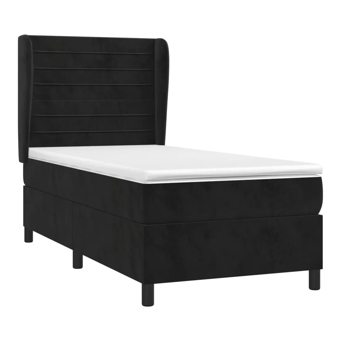 Sommier à lattes de lit avec matelas Noir 100x200 cm Velours
