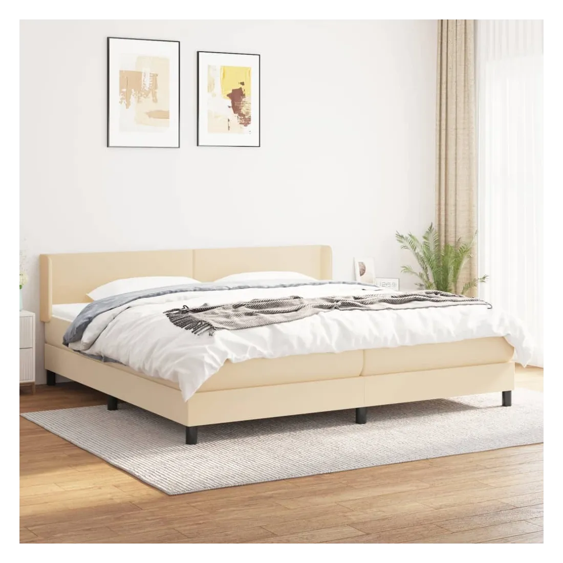 Sommier à lattes de lit avec matelas Crème 200x200 cm Tissu