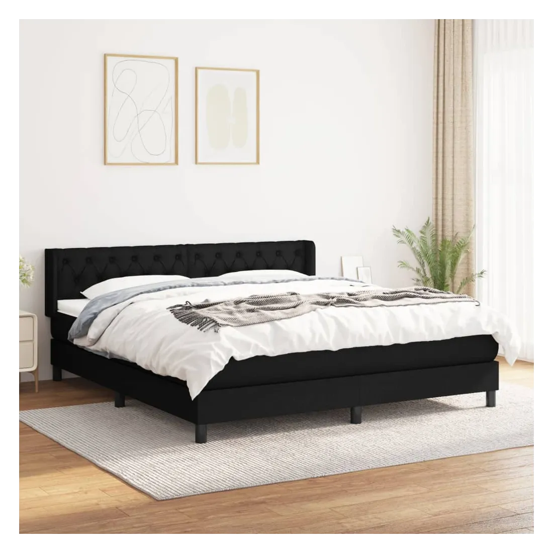 Sommier à lattes de lit avec matelas Noir 160x200 cm Tissu