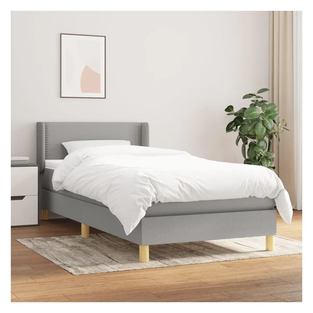 Sommier à lattes de lit avec matelas Gris clair 90x200 cm Tissu