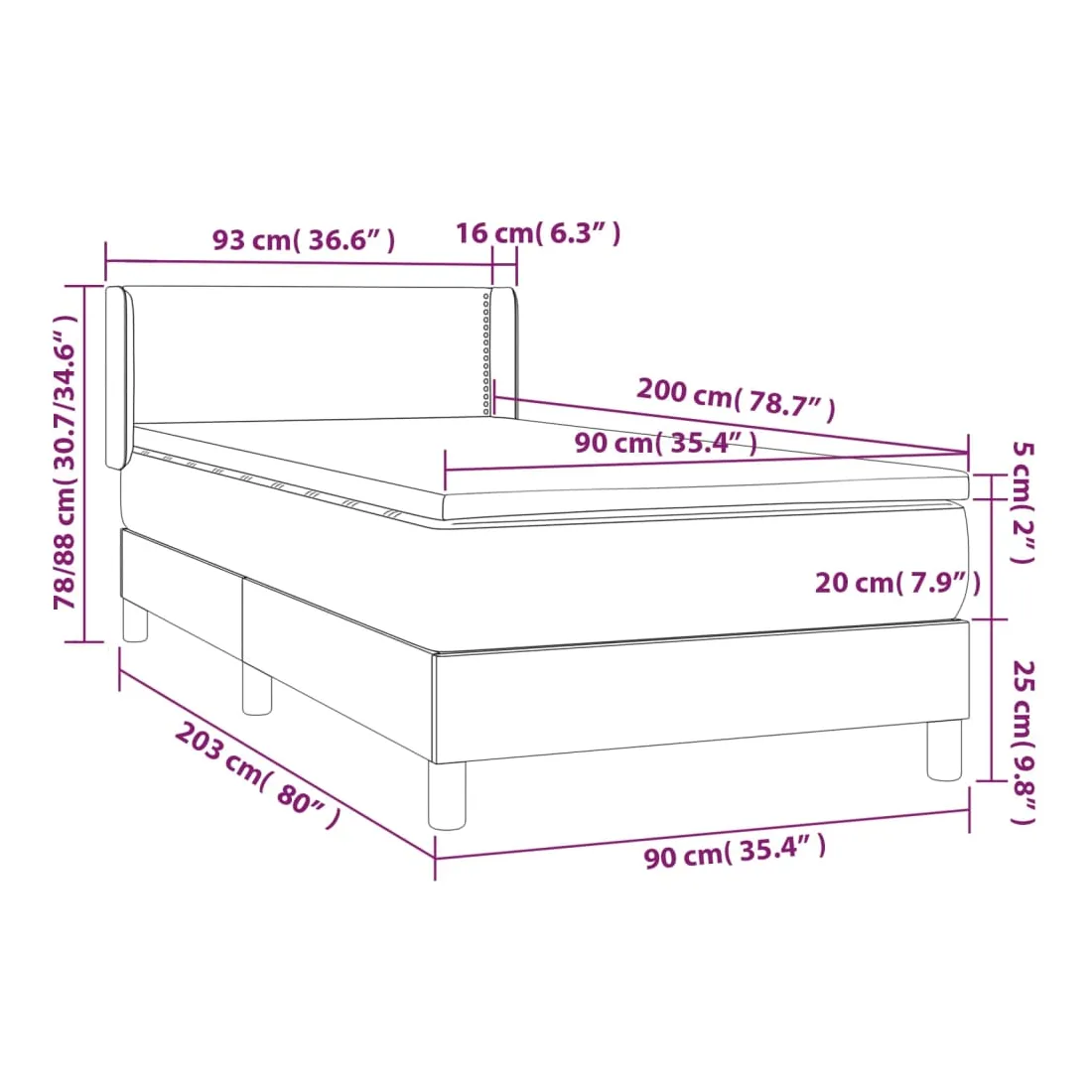 • Dimensions : 90 x 200 x 20 cm (l x L x H)