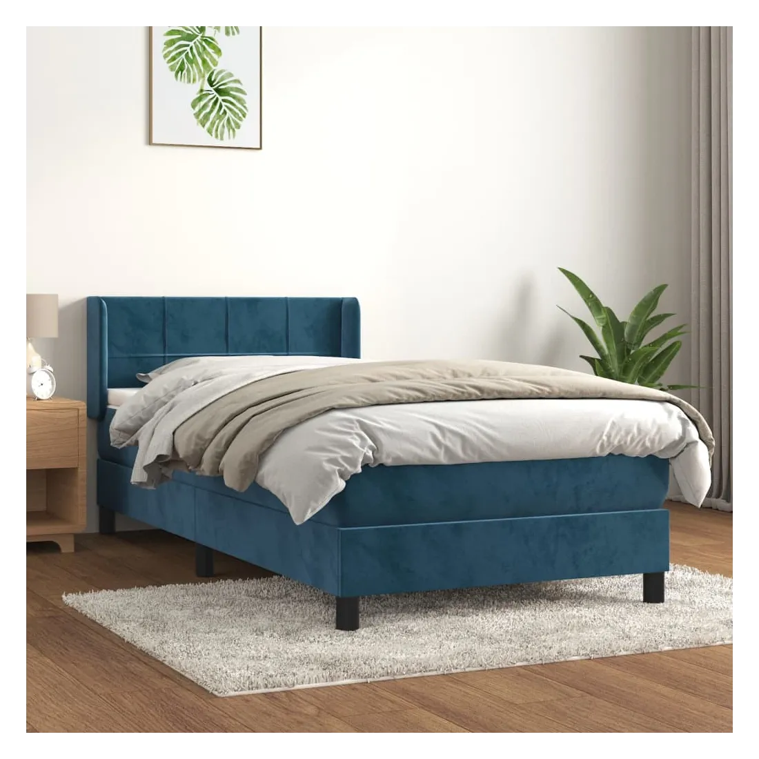 Utilisez ce lit à sommier pour profiter d'une nuit de sommeil réparatrice ! Il vous offre une relaxation maximale et un sommeil agréable. Velours doux : le velours est un tissu doux et luxueux qui se reconnaît à son tas dense de fibres uniformément coupées qui ont une touche lisse. Le tissu en velours présente un toucher doux distinctif, ce qui le rend confortable au toucher.Tête de lit pratique : la tête de lit est réglable en hauteur selon vos préférences. La tête de lit vous offre un excellent soutien du dos lorsque vous êtes assis dans votre lit pour lire ou regarder la télévision.Matelas à ressorts ensachés : le ressort ensaché individuel intégré est connu pour sa très haute qualité tout en assurant un haut niveau de durabilité et d'adaptabilité. Il peut absorber efficacement le bruit et les chocs causés par les sauts et les rotations.Support moyen-dur : ce matelas de lit offre une stabilité accrue et juste le niveau de fermeté sans sacrifier le confort. Il est donc idéal pour les personnes qui dorment sur le dos ou sur le ventre.Protège-matelas doux pour la peau : le protège-matelas est recouvert d'un tissu résistant et doux pour la peau, ce qui le rend souple et confortable. Remarque :Pour des raisons d'hygiène, le matelas ne peut pas être retourné si l'emballage est retiré ou ouvert.Chaque produit est livré avec un manuel de montage dans la boîte pour un montage facile.