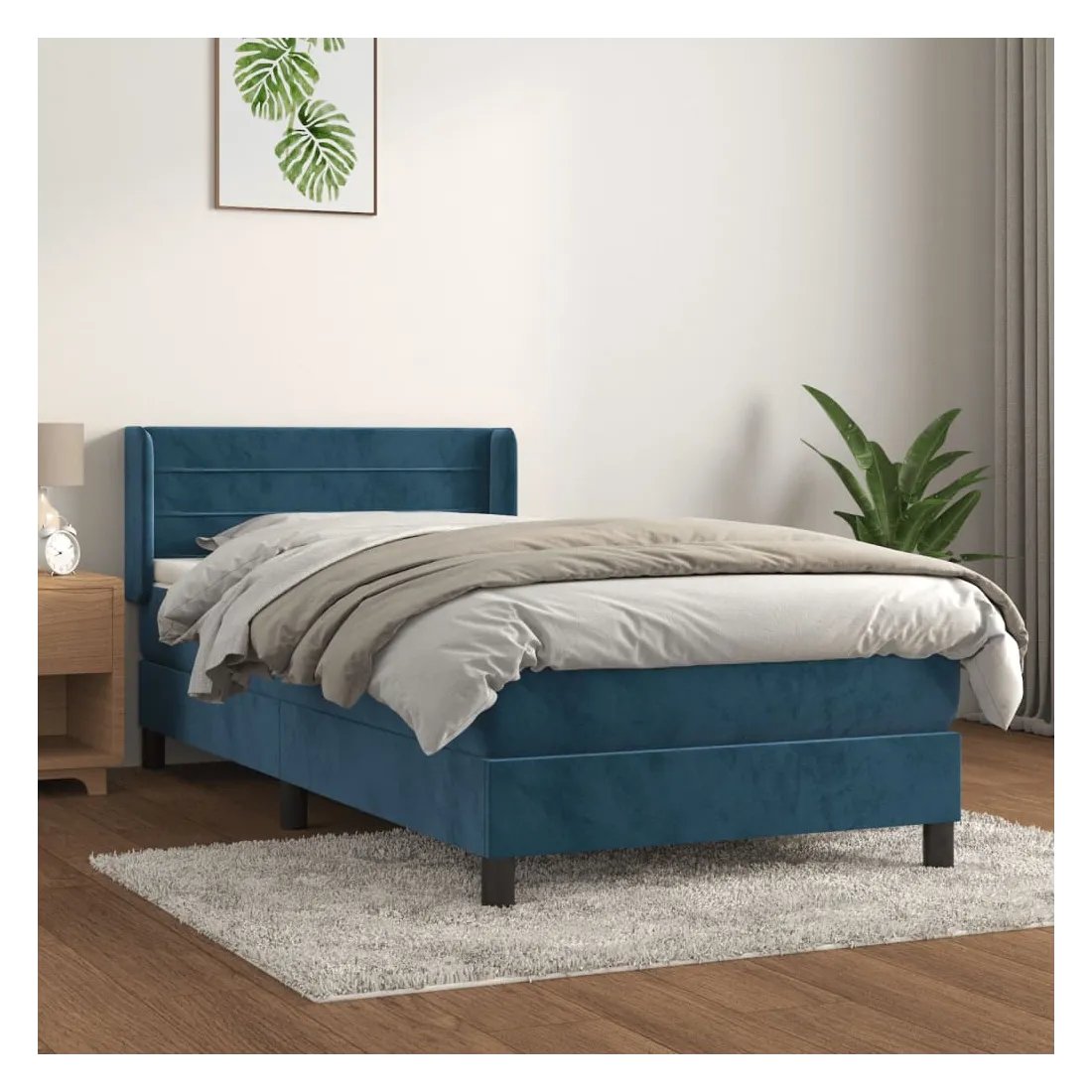 Utilisez ce lit à sommier pour profiter d'une nuit de sommeil réparatrice ! Il vous offre une relaxation maximale et un sommeil agréable. Velours doux : le velours est un tissu doux et luxueux qui se reconnaît à son tas dense de fibres uniformément coupées qui ont une touche lisse. Le tissu en velours présente un toucher doux distinctif, ce qui le rend confortable au toucher.Tête de lit pratique : la tête de lit est réglable en hauteur selon vos préférences. La tête de lit vous offre un excellent soutien du dos lorsque vous êtes assis dans votre lit pour lire ou regarder la télévision.Matelas à ressorts ensachés : le ressort ensaché individuel intégré est connu pour sa très haute qualité tout en assurant un haut niveau de durabilité et d'adaptabilité. Il peut absorber efficacement le bruit et les chocs causés par les sauts et les rotations.Support moyen-dur : ce matelas de lit offre une stabilité accrue et juste le niveau de fermeté sans sacrifier le confort. Il est donc idéal pour les personnes qui dorment sur le dos ou sur le ventre.Protège-matelas doux pour la peau : le protège-matelas est recouvert d'un tissu résistant et doux pour la peau, ce qui le rend souple et confortable. Remarque :Pour des raisons d'hygiène, le matelas ne peut pas être retourné si l'emballage est retiré ou ouvert.Chaque produit est livré avec un manuel de montage dans la boîte pour un montage facile.