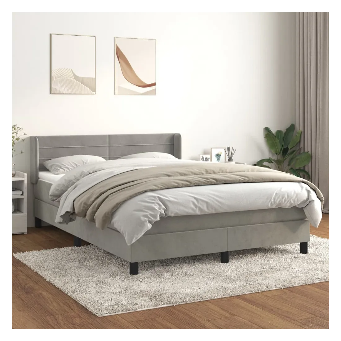 Sommier à lattes de lit et matelas Gris clair 140x200cm Velours