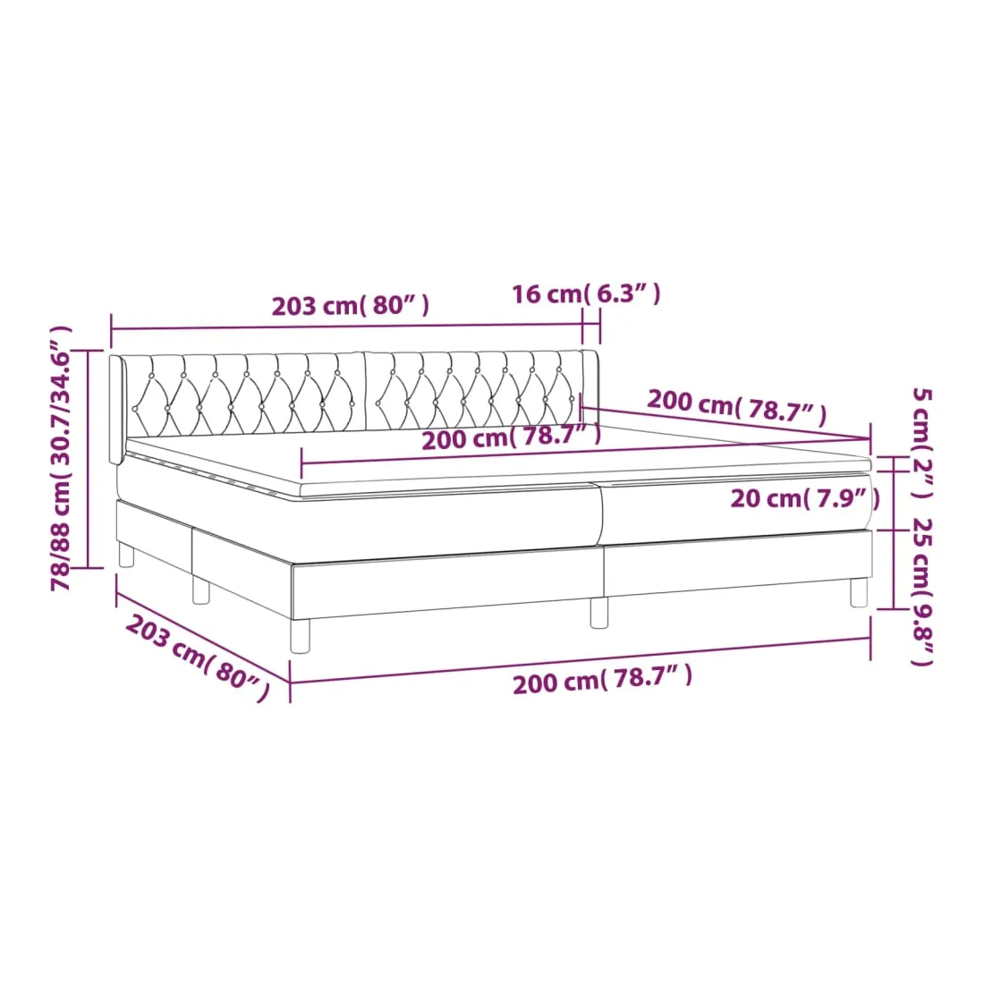 Utilisez ce lit à sommier pour profiter d'une nuit de sommeil réparatrice ! Il vous offre une relaxation maximale et un sommeil agréable. Velours doux : le velours est un tissu doux et luxueux qui se reconnaît à son tas dense de fibres uniformément coupées qui ont une touche lisse. Le tissu en velours présente un toucher doux distinctif, ce qui le rend confortable au toucher.Tête de lit pratique : la tête de lit est réglable en hauteur selon vos préférences. La tête de lit vous offre un excellent soutien du dos lorsque vous êtes assis dans votre lit pour lire ou regarder la télévision.Matelas à ressorts ensachés : le ressort ensaché individuel intégré est connu pour sa très haute qualité tout en assurant un haut niveau de durabilité et d'adaptabilité. Il peut absorber efficacement le bruit et les chocs causés par les sauts et les rotations.Support moyen-dur : ce matelas de lit offre une stabilité accrue et juste le niveau de fermeté sans sacrifier le confort. Il est donc idéal pour les personnes qui dorment sur le dos ou sur le ventre.Protège-matelas doux pour la peau : le protège-matelas est recouvert d'un tissu résistant et doux pour la peau, ce qui le rend souple et confortable. Remarque :Pour des raisons d'hygiène, le matelas ne peut pas être retourné si l'emballage est retiré ou ouvert.Chaque produit est livré avec un manuel de montage dans la boîte pour un montage facile.