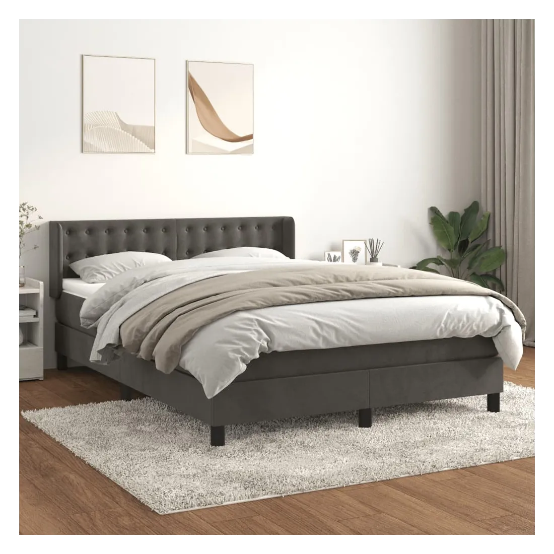 Utilisez ce lit à sommier pour profiter d'une nuit de sommeil réparatrice ! Il vous offre une relaxation maximale et un sommeil agréable. Velours doux : le velours est un tissu doux et luxueux qui se reconnaît à son tas dense de fibres uniformément coupées qui ont une touche lisse. Le tissu en velours présente un toucher doux distinctif, ce qui le rend confortable au toucher.Tête de lit pratique : la tête de lit est réglable en hauteur selon vos préférences. La tête de lit vous offre un excellent soutien du dos lorsque vous êtes assis dans votre lit pour lire ou regarder la télévision.Matelas à ressorts ensachés : le ressort ensaché individuel intégré est connu pour sa très haute qualité tout en assurant un haut niveau de durabilité et d'adaptabilité. Il peut absorber efficacement le bruit et les chocs causés par les sauts et les rotations.Support moyen-dur : ce matelas de lit offre une stabilité accrue et juste le niveau de fermeté sans sacrifier le confort. Il est donc idéal pour les personnes qui dorment sur le dos ou sur le ventre.Protège-matelas doux pour la peau : le protège-matelas est recouvert d'un tissu résistant et doux pour la peau, ce qui le rend souple et confortable. Remarque :Pour des raisons d'hygiène, le matelas ne peut pas être retourné si l'emballage est retiré ou ouvert.Chaque produit est livré avec un manuel de montage dans la boîte pour un montage facile.