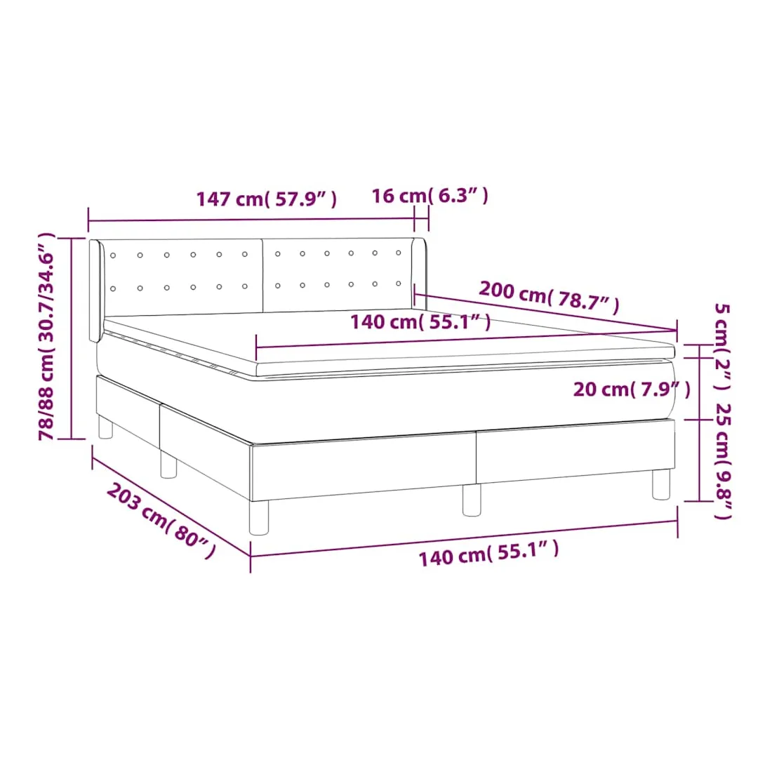 Utilisez ce lit à sommier pour profiter d'une nuit de sommeil réparatrice ! Il vous offre une relaxation maximale et un sommeil agréable. Velours doux : le velours est un tissu doux et luxueux qui se reconnaît à son tas dense de fibres uniformément coupées qui ont une touche lisse. Le tissu en velours présente un toucher doux distinctif, ce qui le rend confortable au toucher.Tête de lit pratique : la tête de lit est réglable en hauteur selon vos préférences. La tête de lit vous offre un excellent soutien du dos lorsque vous êtes assis dans votre lit pour lire ou regarder la télévision.Matelas à ressorts ensachés : le ressort ensaché individuel intégré est connu pour sa très haute qualité tout en assurant un haut niveau de durabilité et d'adaptabilité. Il peut absorber efficacement le bruit et les chocs causés par les sauts et les rotations.Support moyen-dur : ce matelas de lit offre une stabilité accrue et juste le niveau de fermeté sans sacrifier le confort. Il est donc idéal pour les personnes qui dorment sur le dos ou sur le ventre.Protège-matelas doux pour la peau : le protège-matelas est recouvert d'un tissu résistant et doux pour la peau, ce qui le rend souple et confortable. Remarque :Pour des raisons d'hygiène, le matelas ne peut pas être retourné si l'emballage est retiré ou ouvert.Chaque produit est livré avec un manuel de montage dans la boîte pour un montage facile.