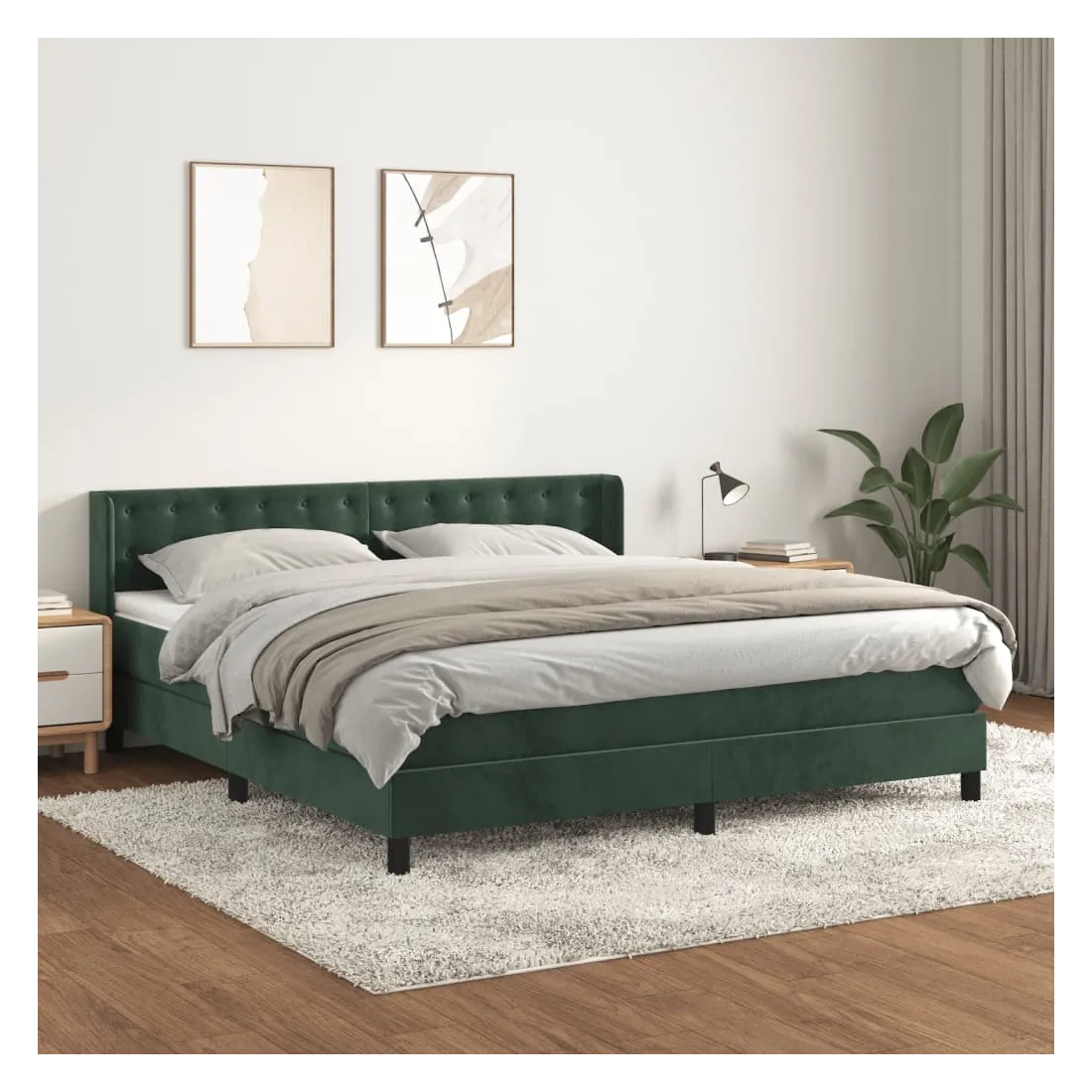 Utilisez ce lit à sommier pour profiter d'une nuit de sommeil réparatrice ! Il vous offre une relaxation maximale et un sommeil agréable. Velours doux : le velours est un tissu doux et luxueux qui se reconnaît à son tas dense de fibres uniformément coupées qui ont une touche lisse. Le tissu en velours présente un toucher doux distinctif, ce qui le rend confortable au toucher.Tête de lit pratique : la tête de lit est réglable en hauteur selon vos préférences. La tête de lit vous offre un excellent soutien du dos lorsque vous êtes assis dans votre lit pour lire ou regarder la télévision.Matelas à ressorts ensachés : le ressort ensaché individuel intégré est connu pour sa très haute qualité tout en assurant un haut niveau de durabilité et d'adaptabilité. Il peut absorber efficacement le bruit et les chocs causés par les sauts et les rotations.Support moyen-dur : ce matelas de lit offre une stabilité accrue et juste le niveau de fermeté sans sacrifier le confort. Il est donc idéal pour les personnes qui dorment sur le dos ou sur le ventre.Protège-matelas doux pour la peau : le protège-matelas est recouvert d'un tissu résistant et doux pour la peau, ce qui le rend souple et confortable. Remarque :Pour des raisons d'hygiène, le matelas ne peut pas être retourné si l'emballage est retiré ou ouvert.Chaque produit est livré avec un manuel de montage dans la boîte pour un montage facile.