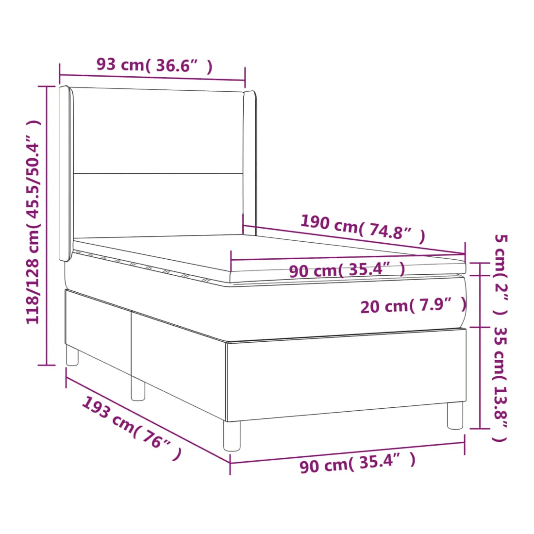 90 x 190 cm