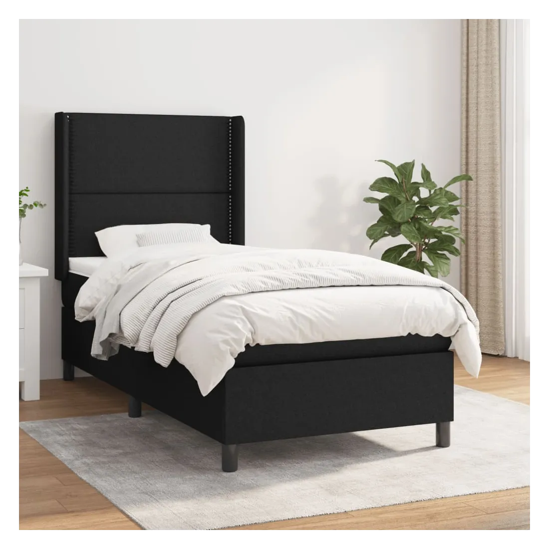 Sommier à lattes de lit avec matelas Noir 90x190 cm Tissu