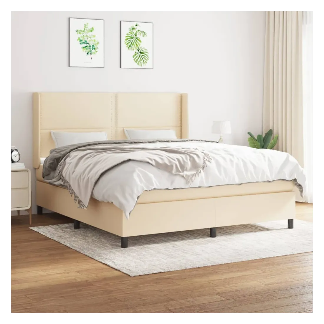 Sommier à lattes de lit avec matelas Crème 180x200 cm Tissu