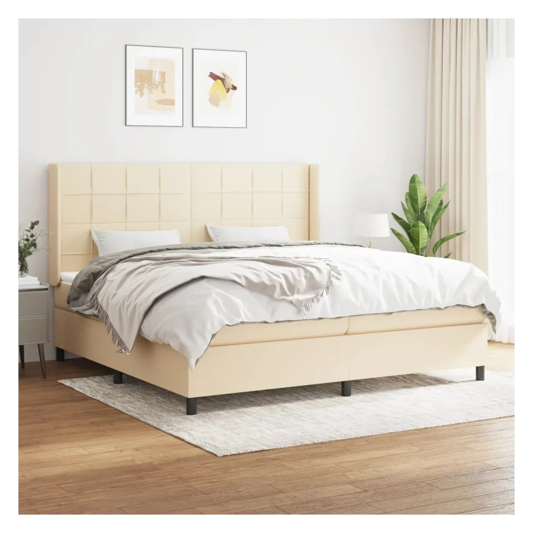 Sommier à lattes de lit avec matelas Crème 200x200 cm Tissu