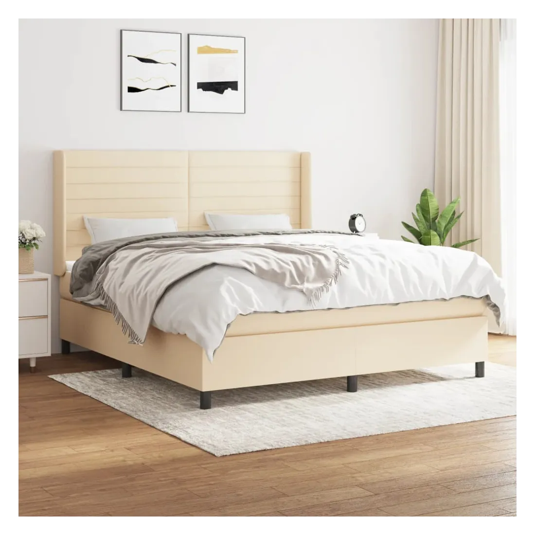 Sommier à lattes de lit avec matelas Crème 180x200 cm Tissu