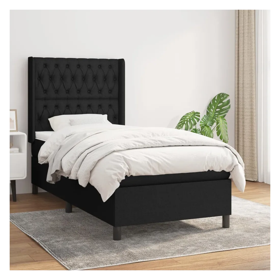 Sommier à lattes de lit avec matelas Noir 90x190 cm Tissu