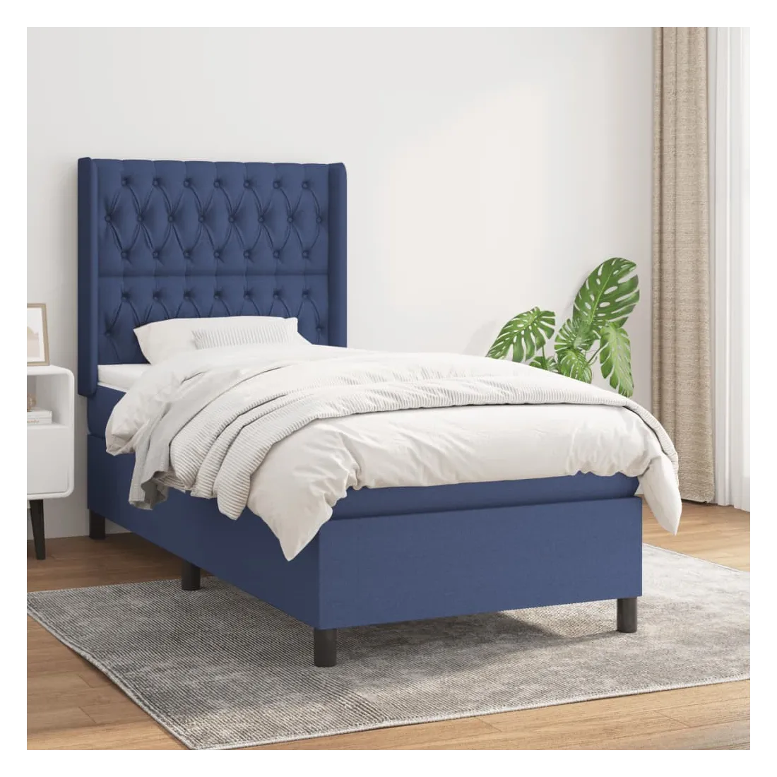 Sommier à lattes de lit avec matelas Bleu 90x190 cm Tissu