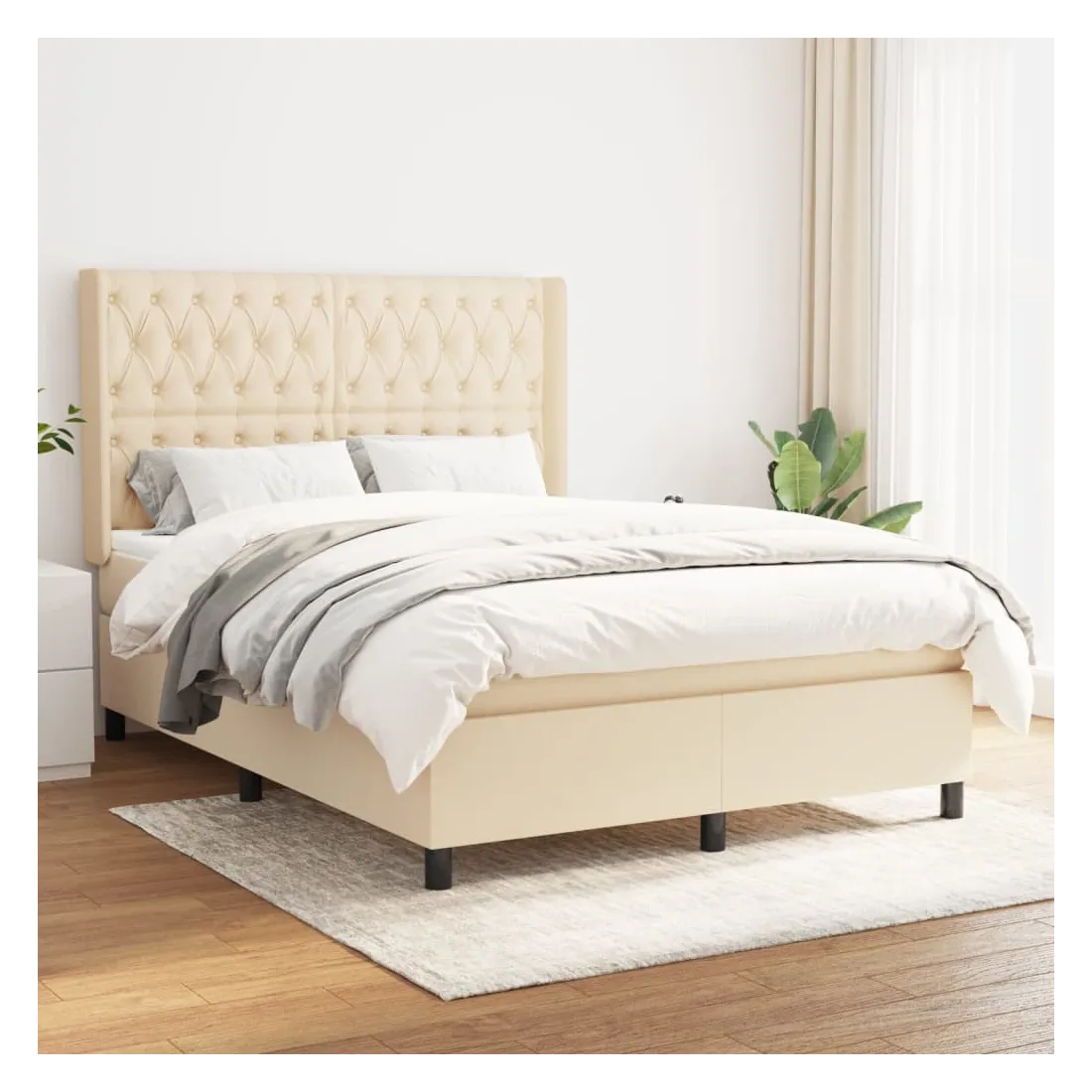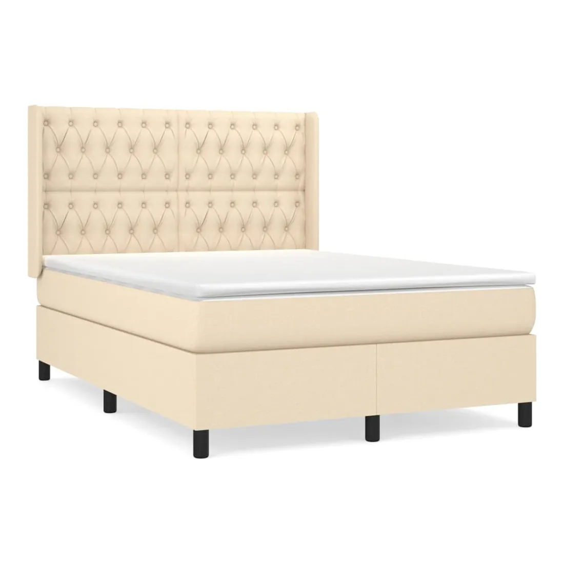 Sommier à lattes de lit avec matelas Crème 140x200 cm Tissu