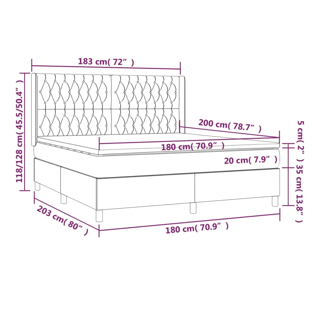 • Dimensions : 180 x 200 x 20 cm (l x L x H)